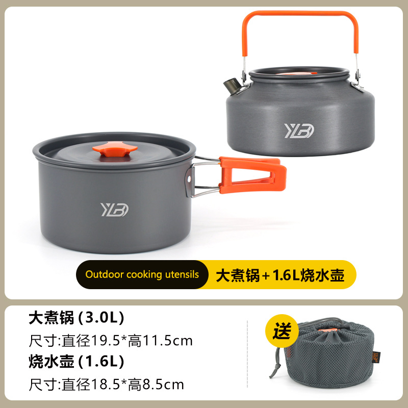 야외 캠핑 주전자, 초경량 휴대용 냄비 세트, 소형 냄비, 캠핑 및 피크닉 겸용 휴대용 알루미늄 합금 식기