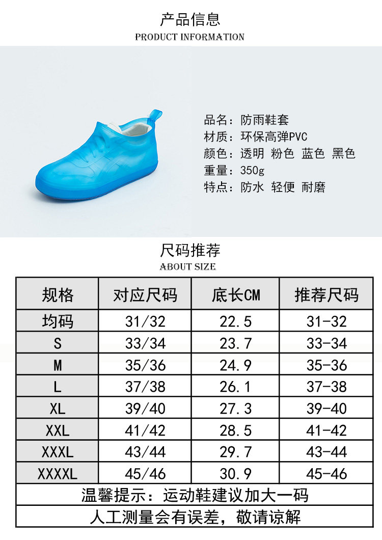남성과 여성의 성인 실리콘 신발 커버 방수 비오는 날 두꺼운 미끄럼 방지 바닥 pvc 장화 커버 장화스토어 가기