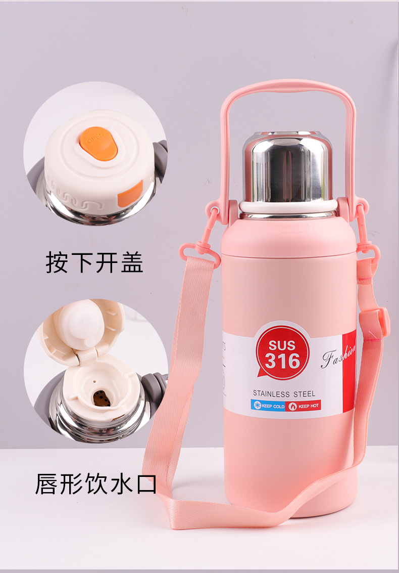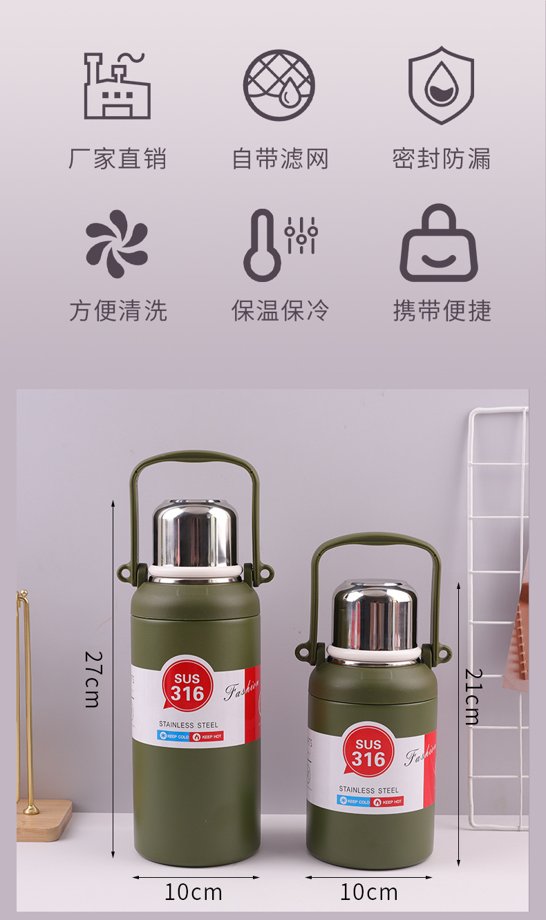 316 스테인레스 스틸 보온병 컵 대용량 휴대용 냄비 야외 등산 여행 냄비 직접 음료 스포츠 주전자 보온병 컵