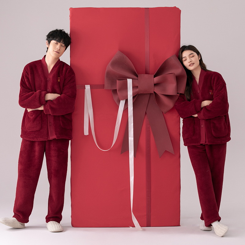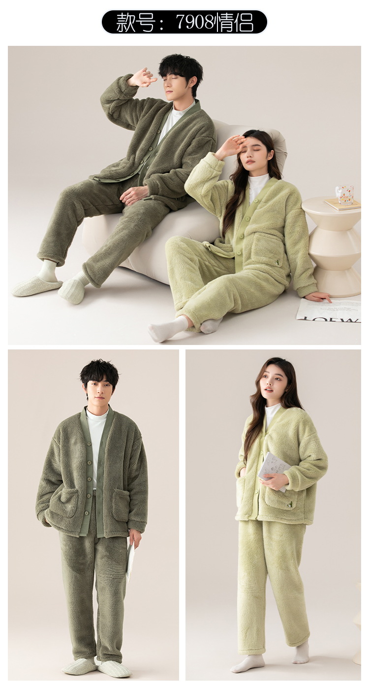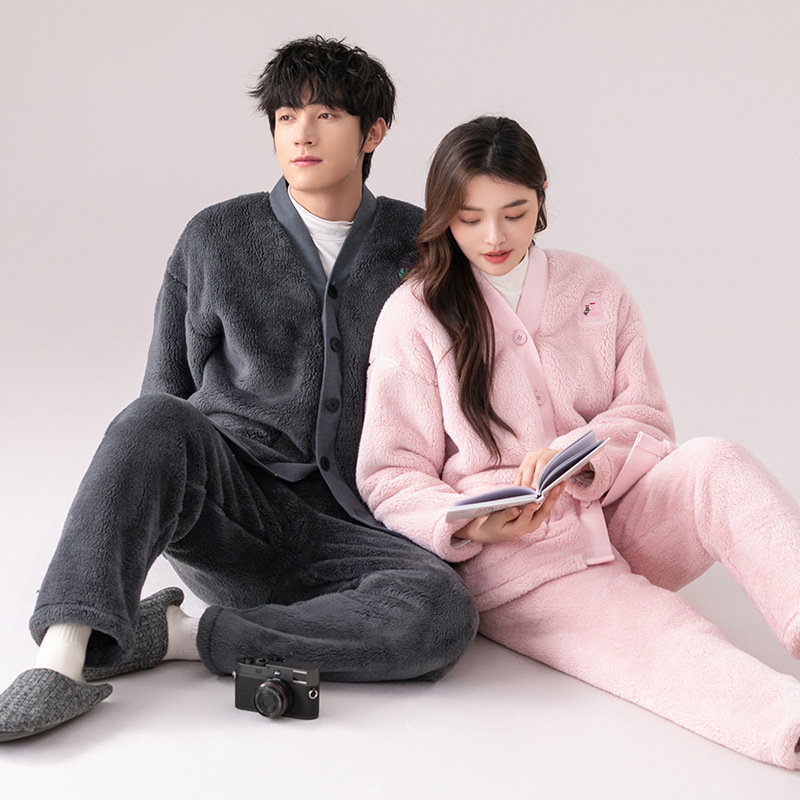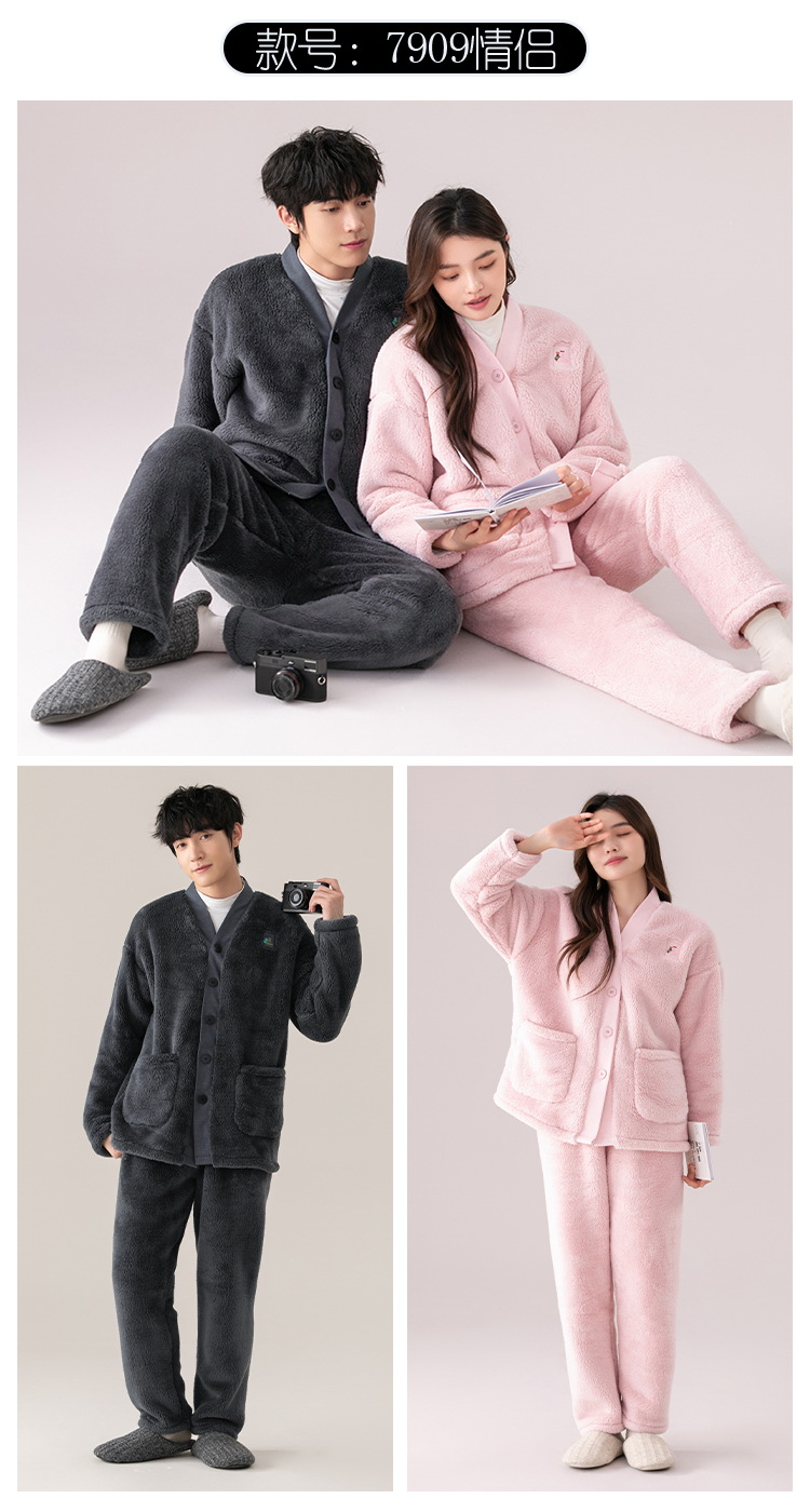 산호 양털 커플 잠옷 겨울 기모 두꺼운 기모노 따뜻한 세트 플러스 사이즈 플란넬 홈 착용 두꺼운 도매스토어 가기