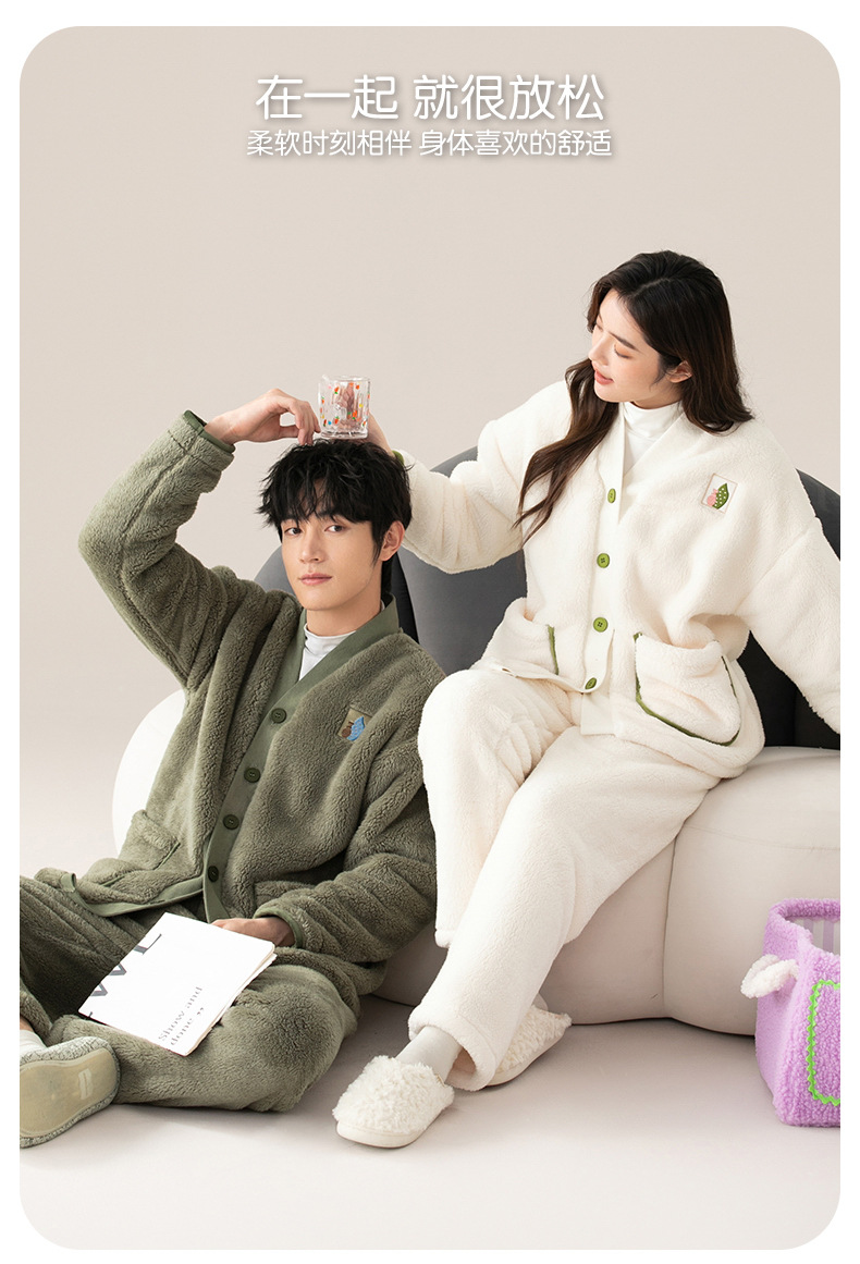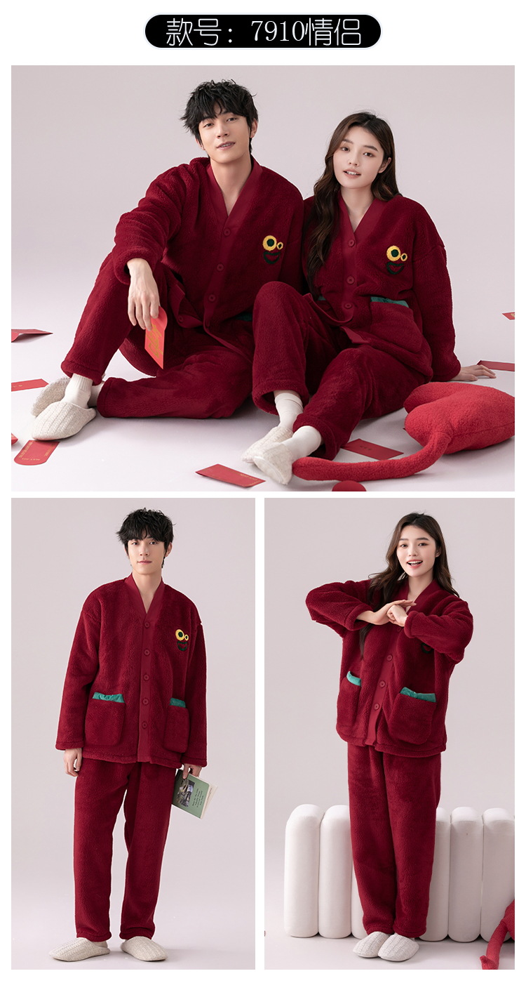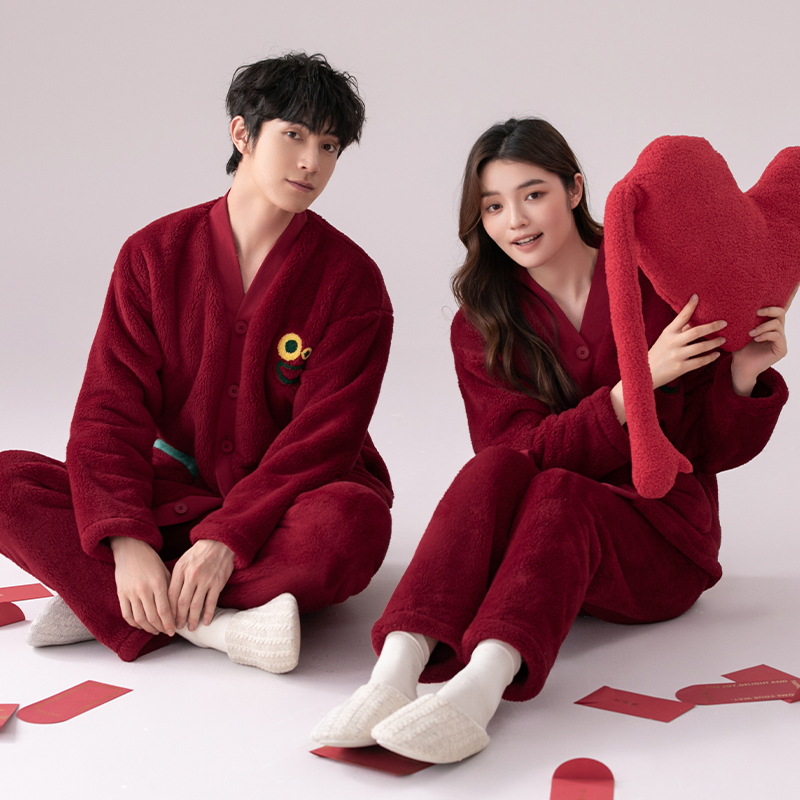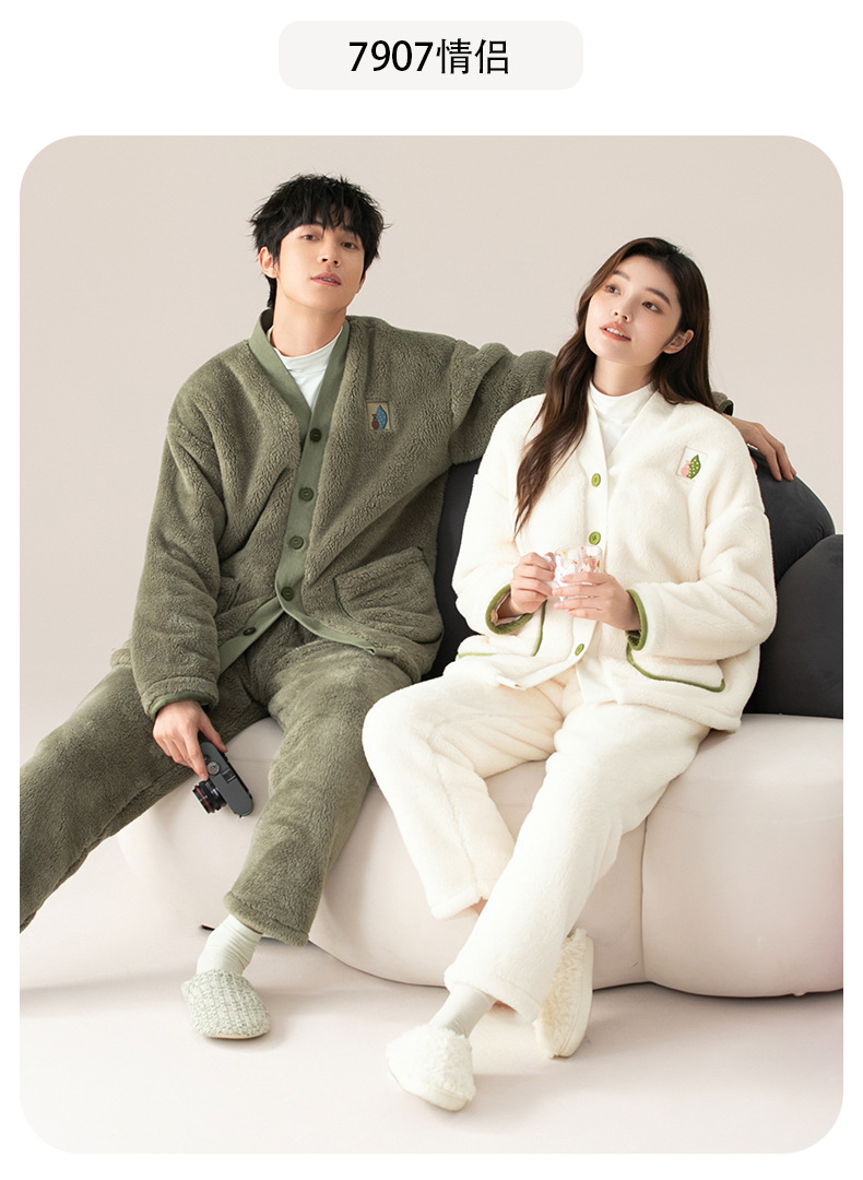 산호 양털 커플 잠옷 겨울 기모 두꺼운 기모노 따뜻한 세트 플러스 사이즈 플란넬 홈 착용 두꺼운 도매스토어 가기