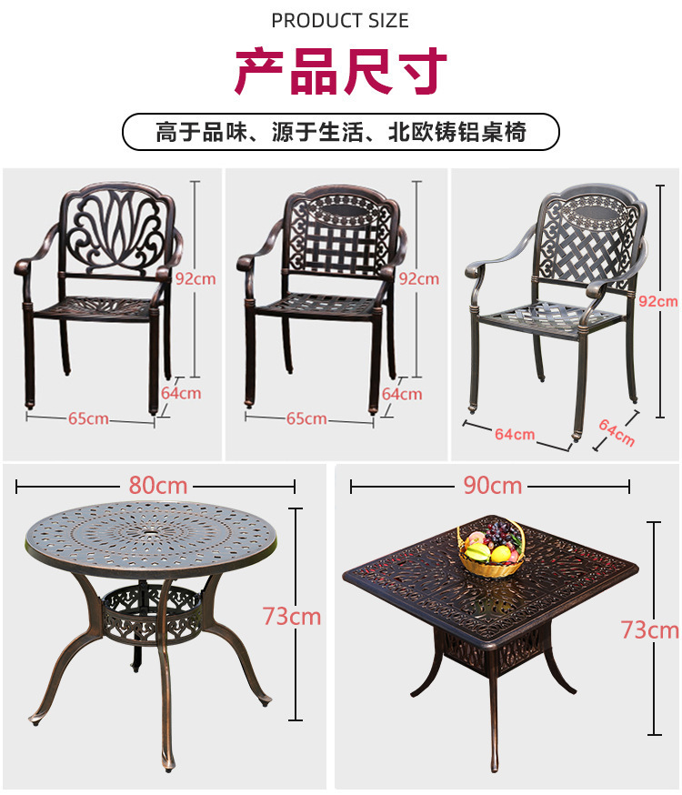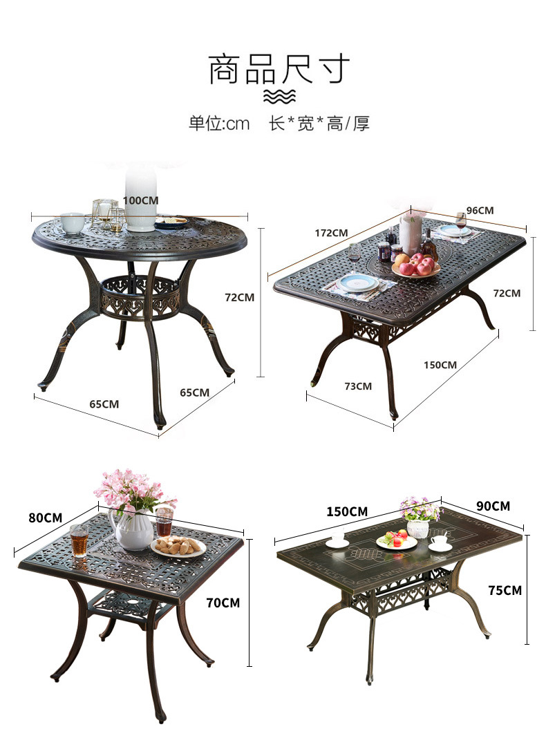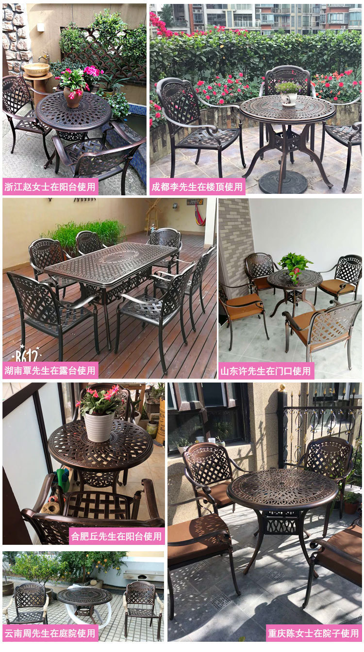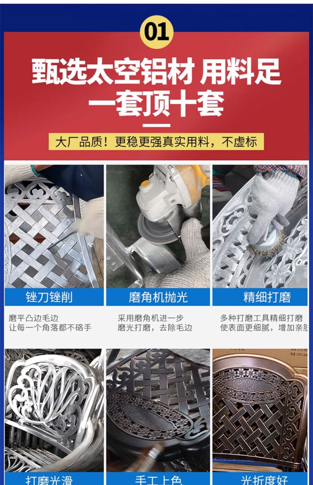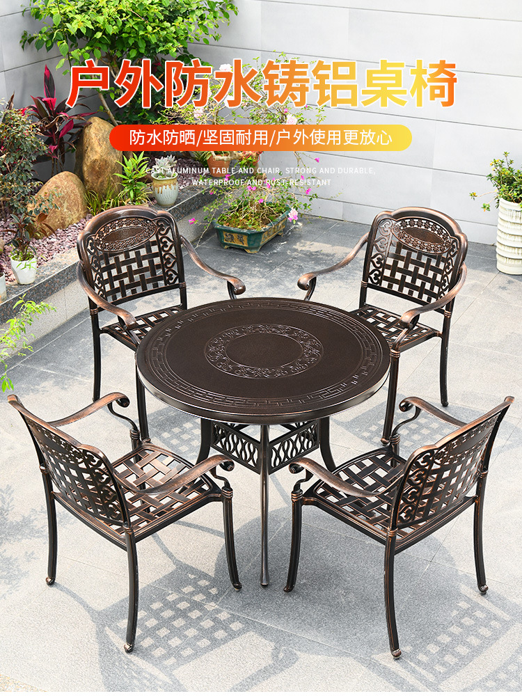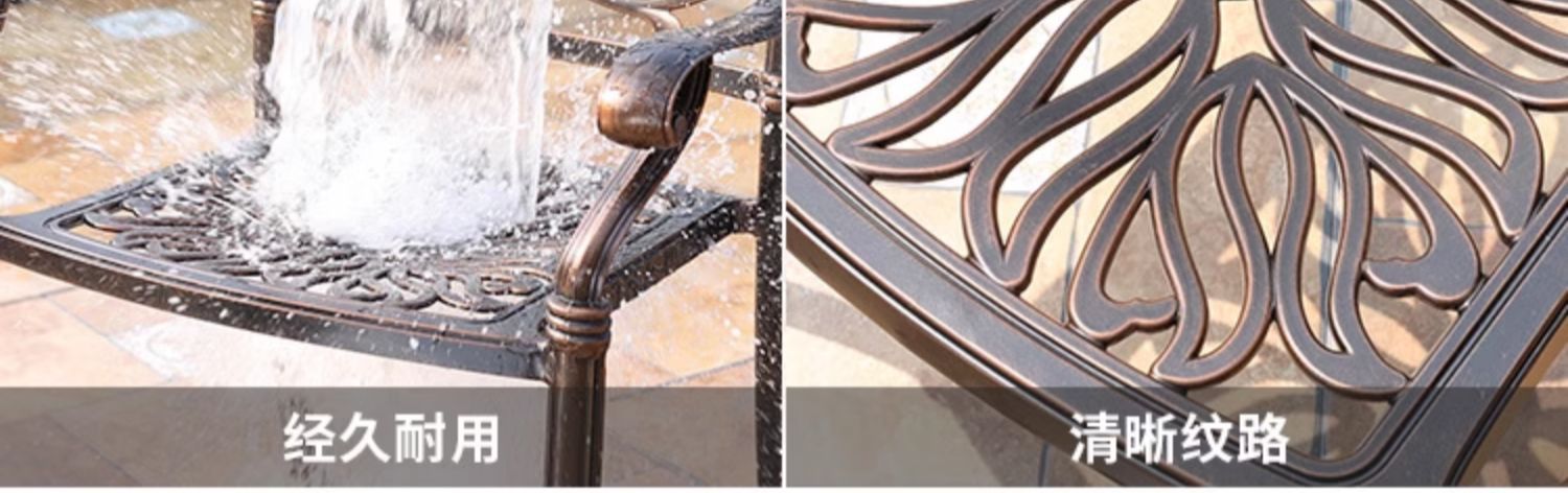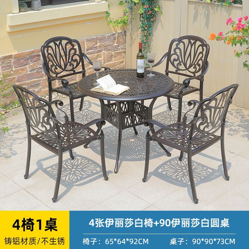 재고 가벼운 고급 간단한 야외 캐스트 알루미늄 테이블과 의자 발코니 금속 작은 테이블과 의자 조합 빌라 안뜰 테라스 테이블과 의자스토어 가기