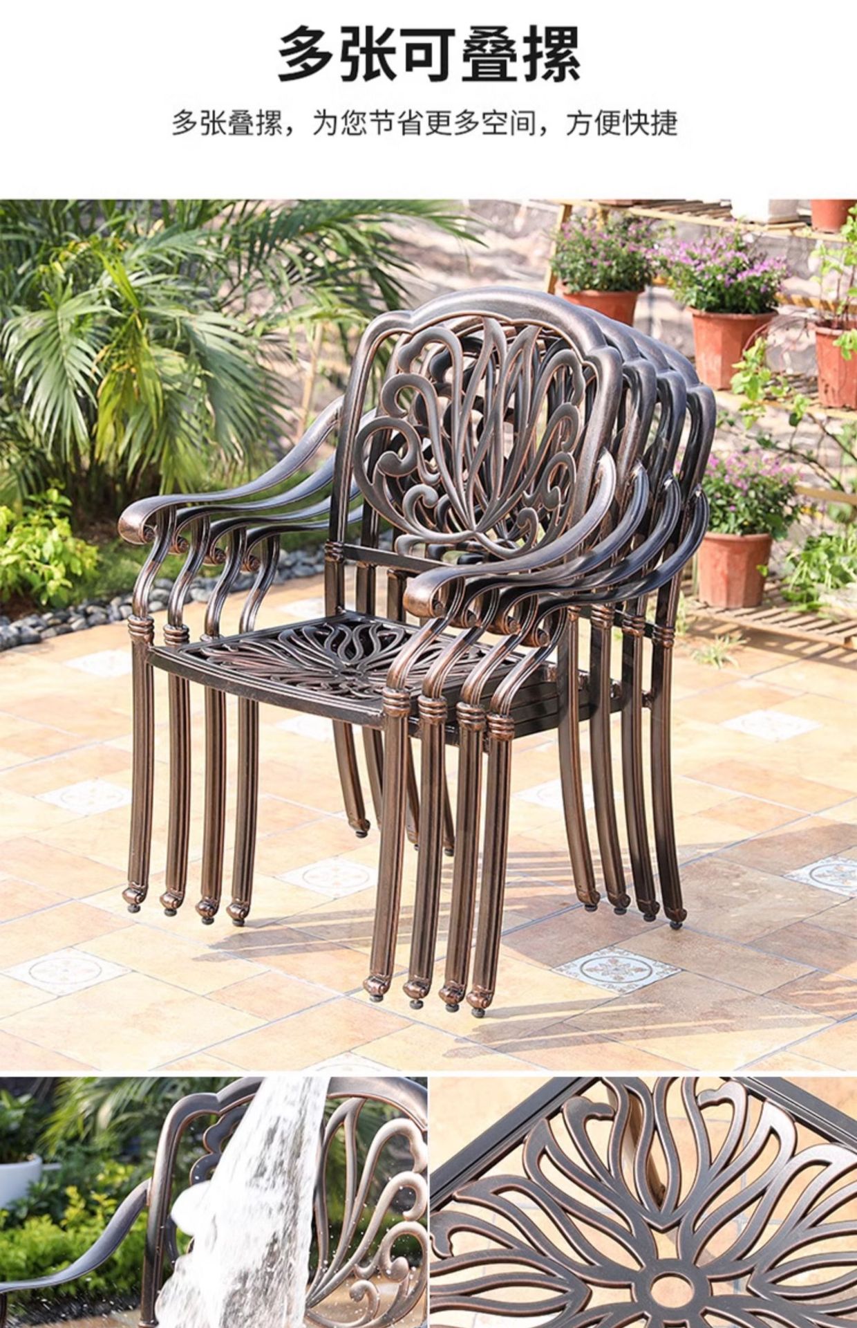 재고 가벼운 고급 간단한 야외 캐스트 알루미늄 테이블과 의자 발코니 금속 작은 테이블과 의자 조합 빌라 안뜰 테라스 테이블과 의자