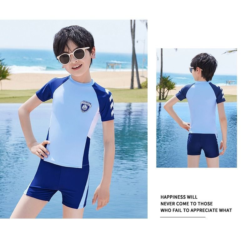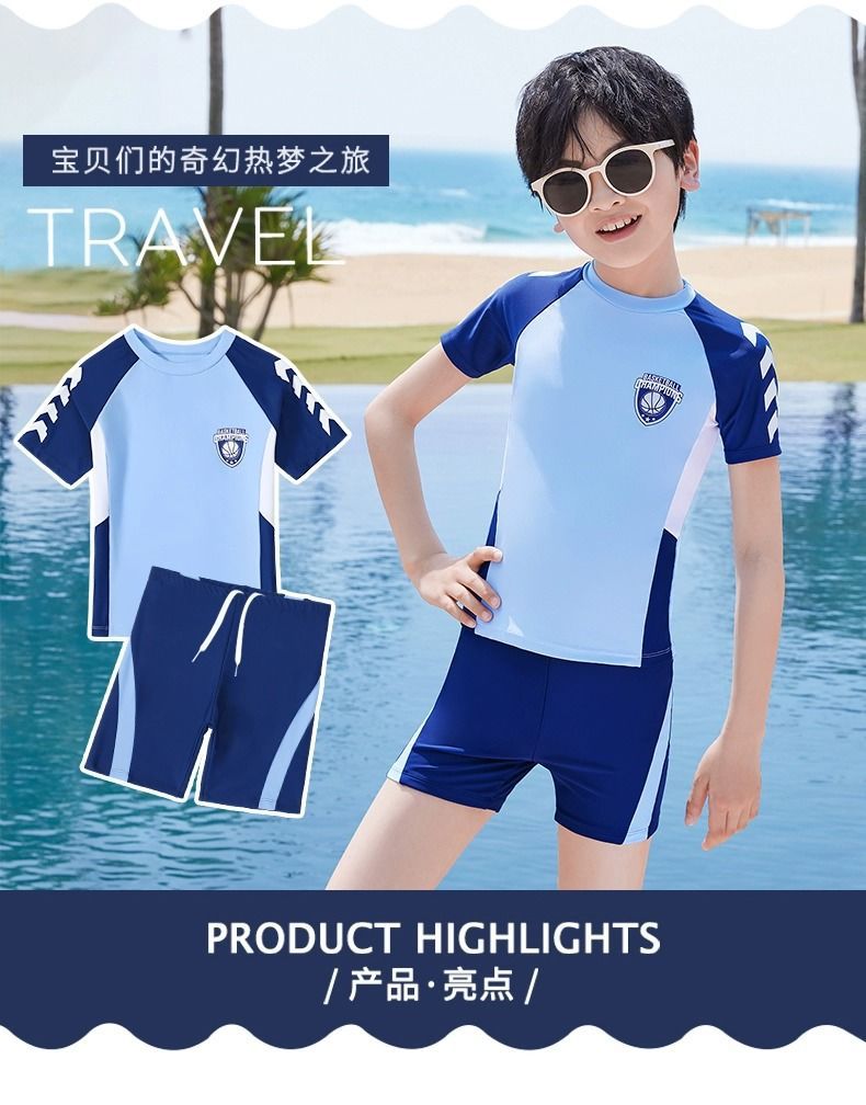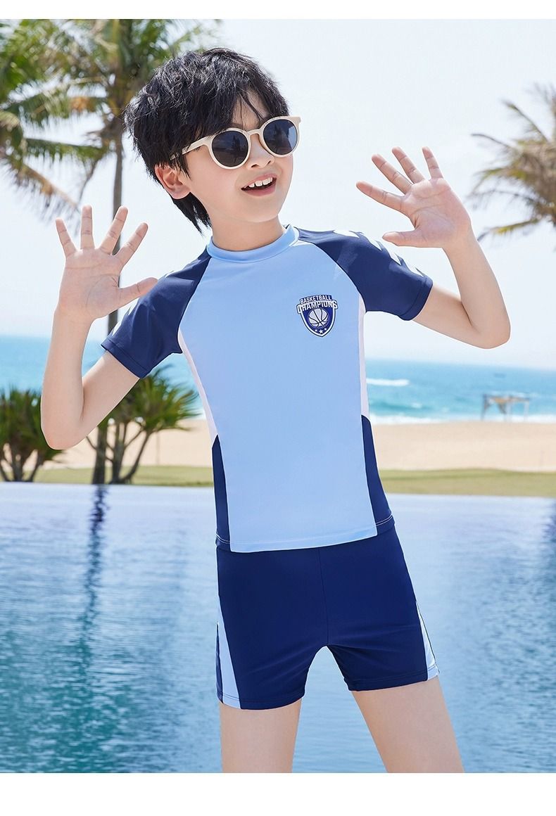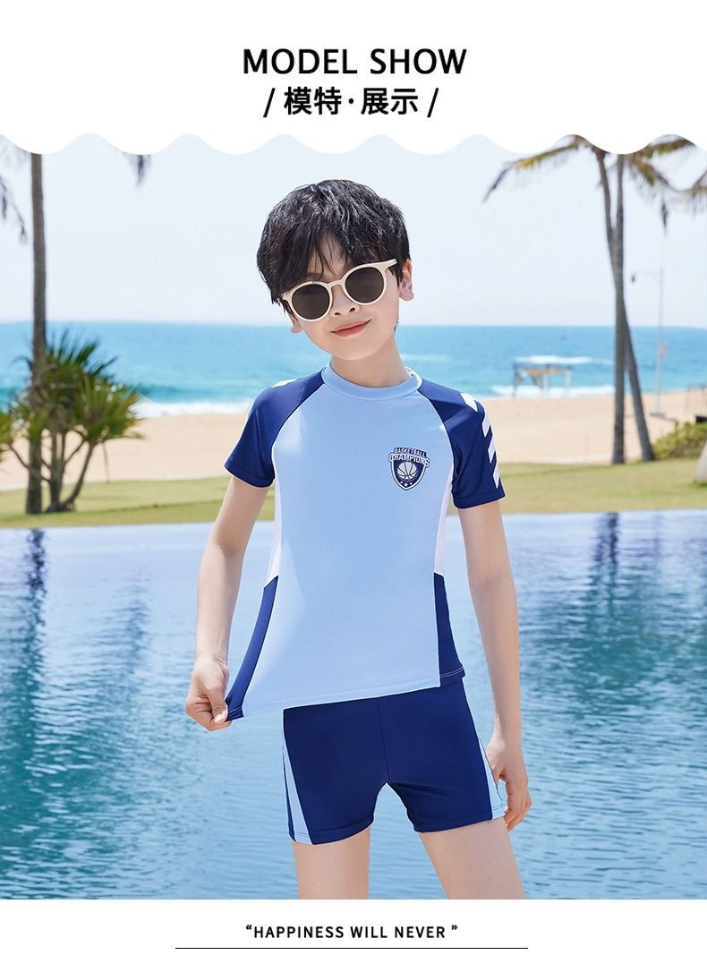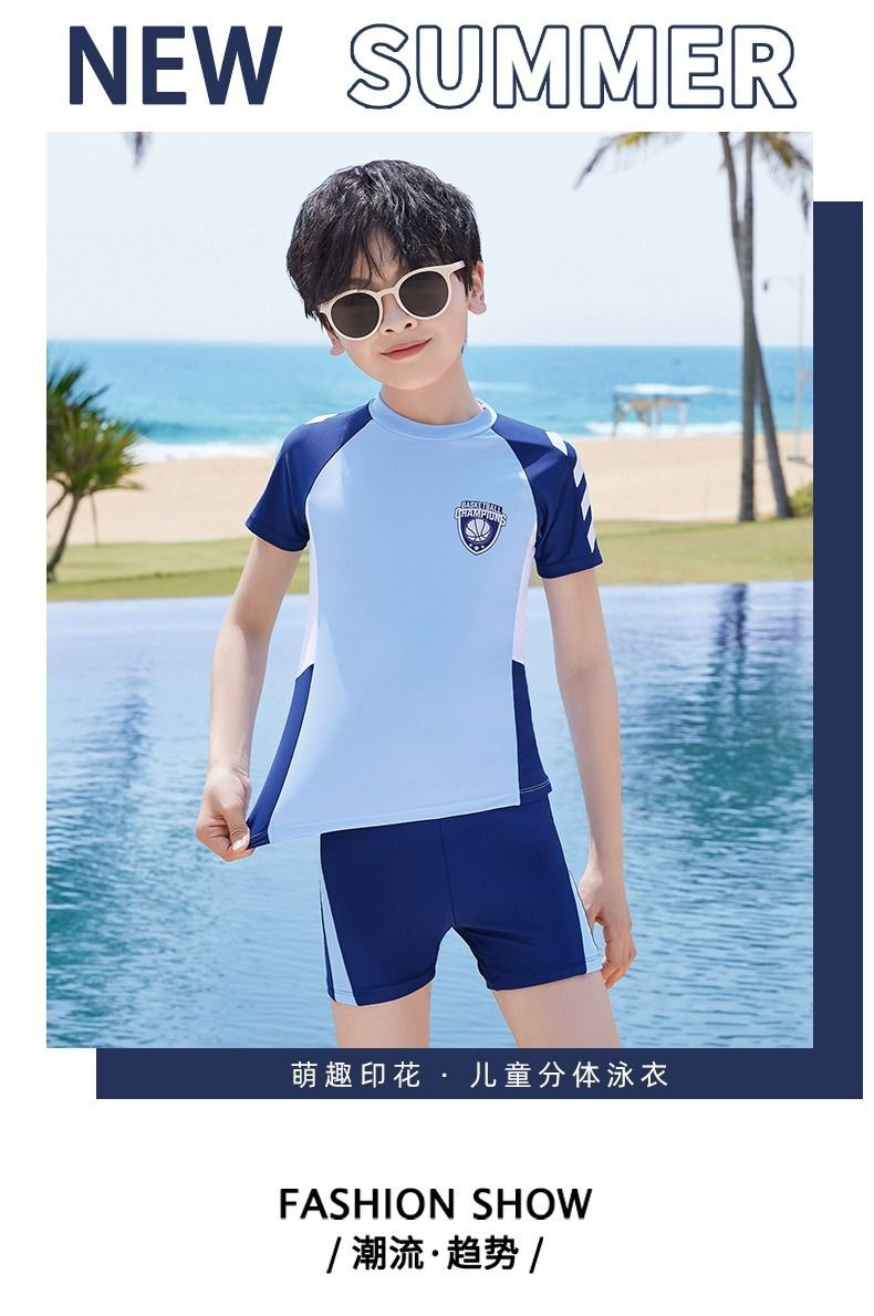 아동 수영복 소년 여름 2025 새로운 청소년 스플릿 수영복 중대형 어린이 속건성 수영 트렁크 수영복