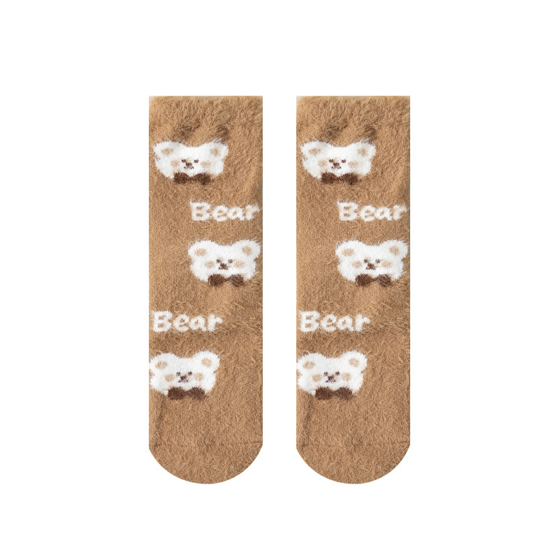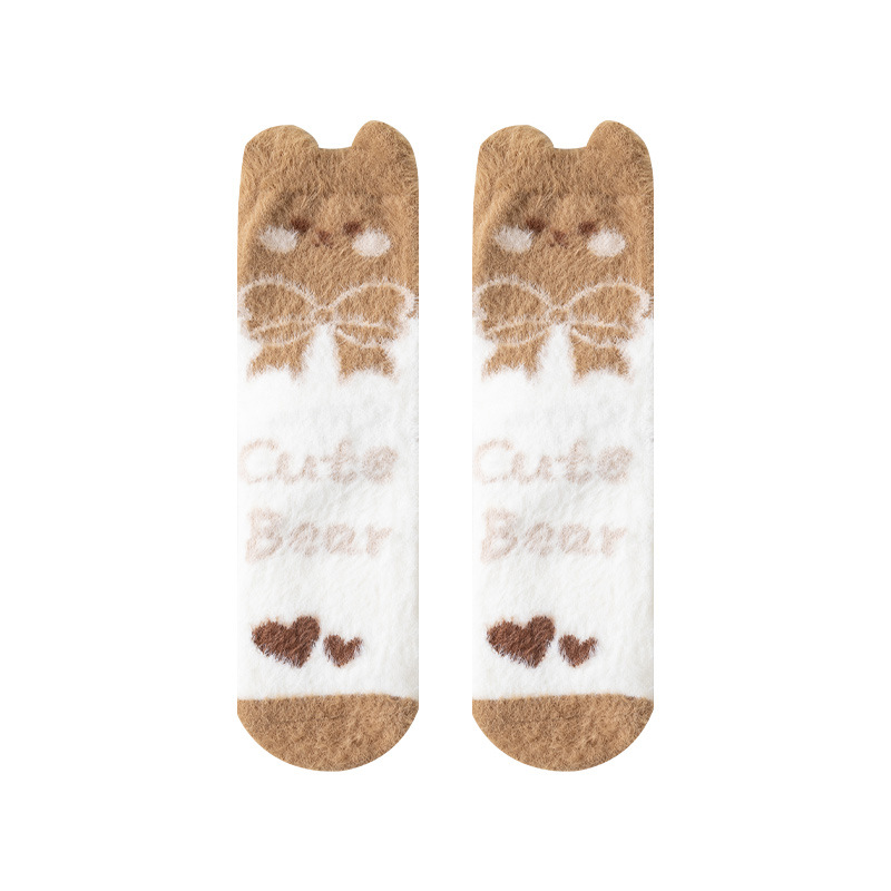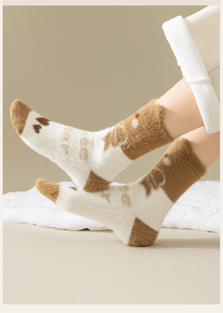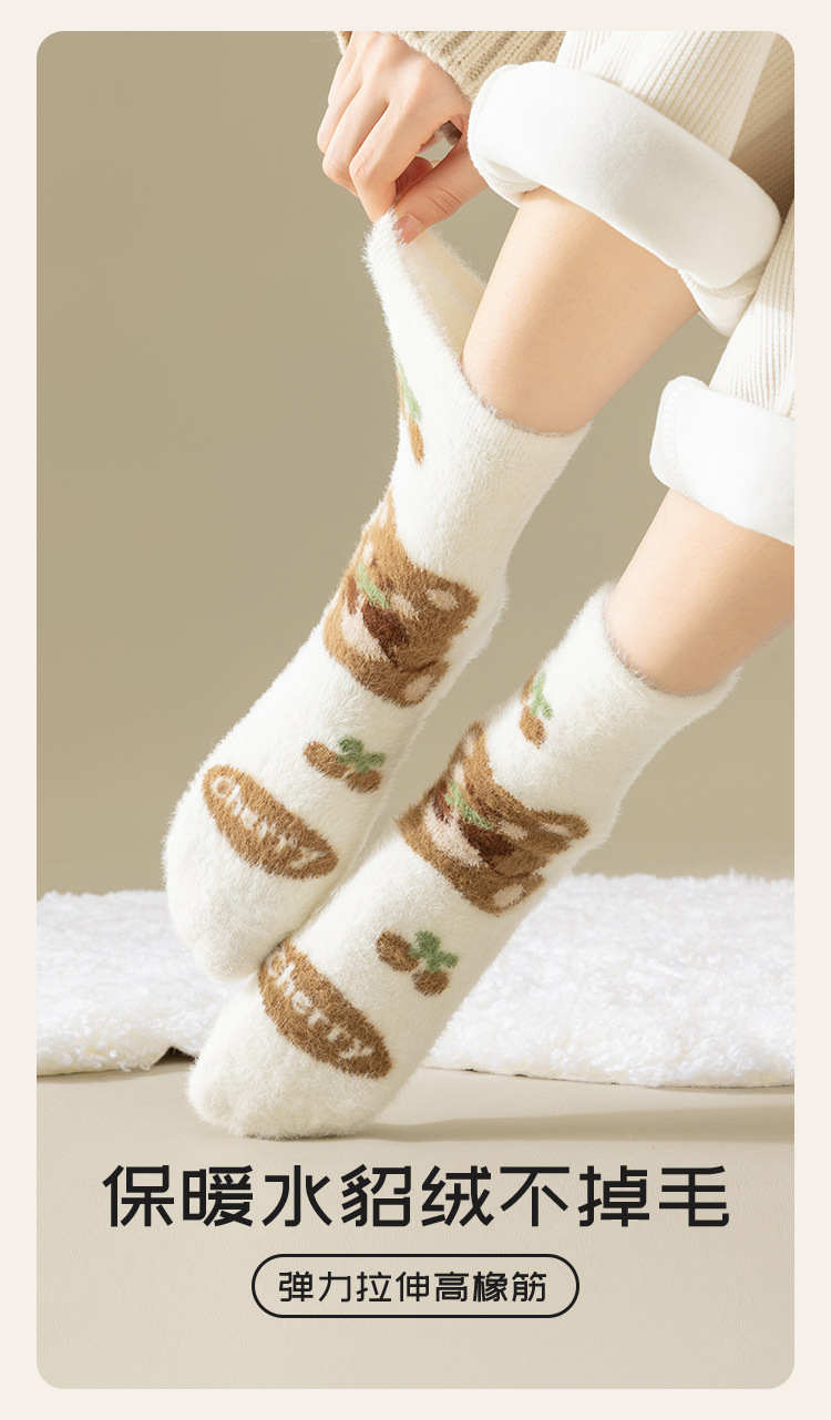 밍크 벨벳 양말 여성용 송아지 중간 길이 양말 가을과 겨울 산호 벨벳 바닥 양말 기모 두꺼운 집 수면 감금 스타킹스토어 가기