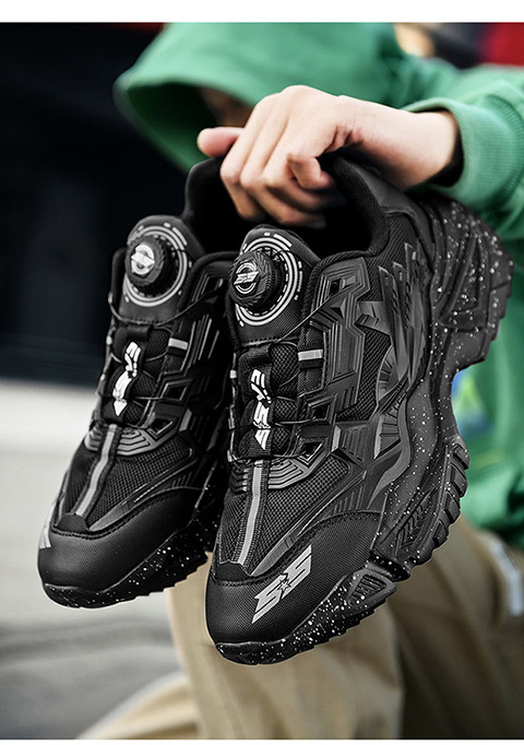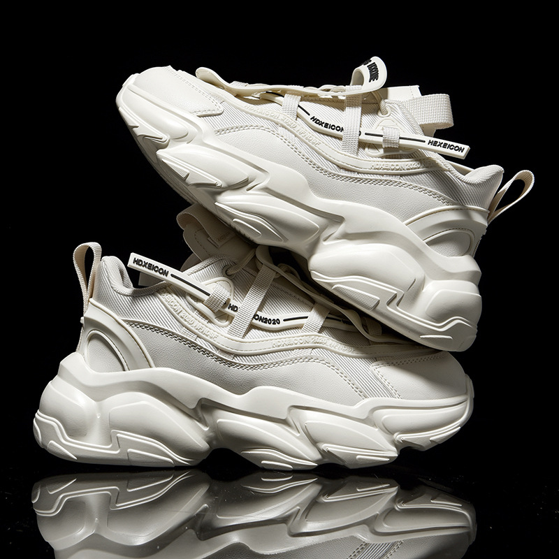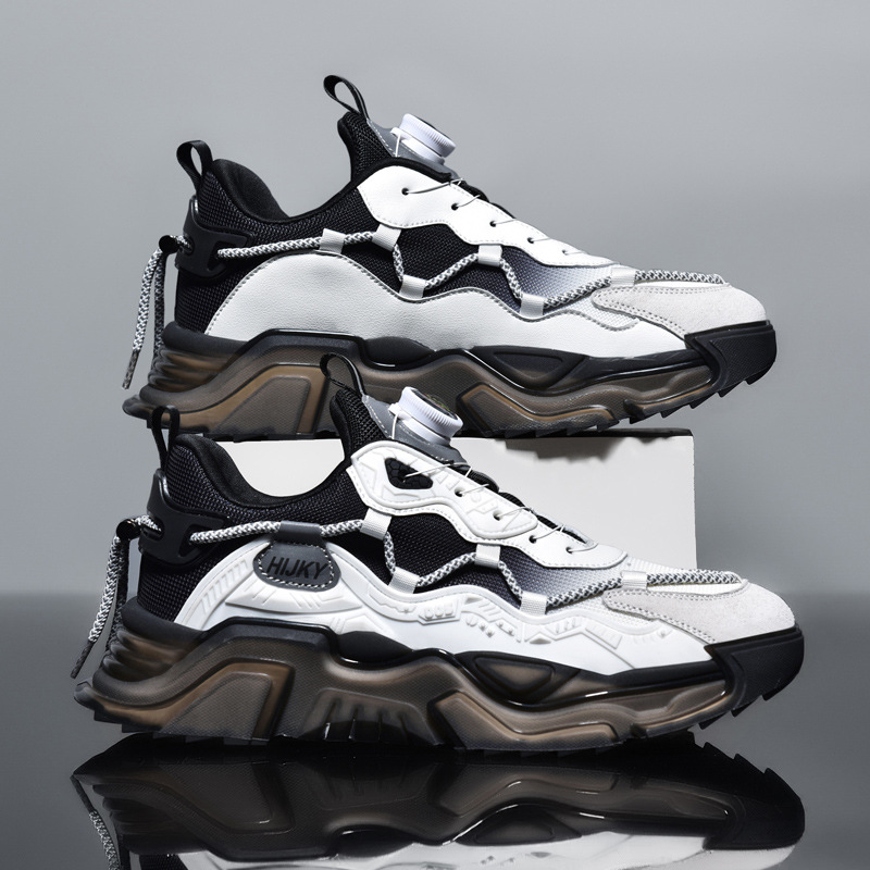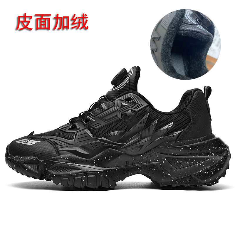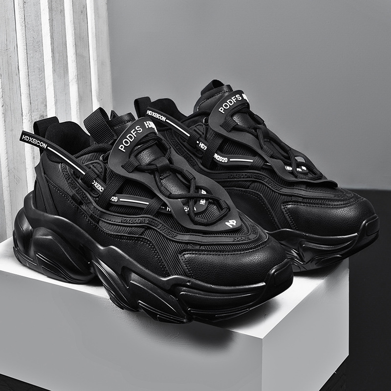 大码男鞋潮牌厚底增高休闲运动鞋男款秋冬黑武士老爹鞋旋转扣鞋子