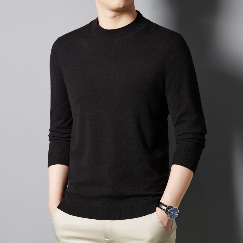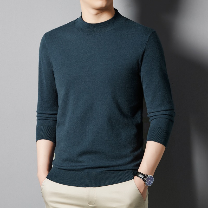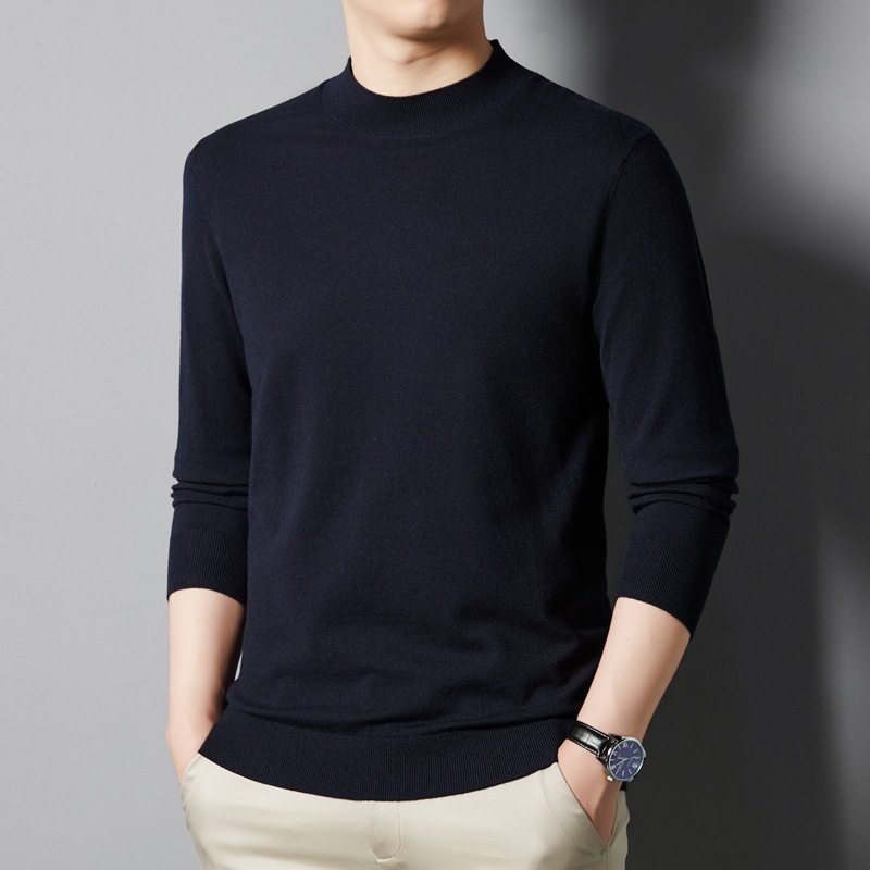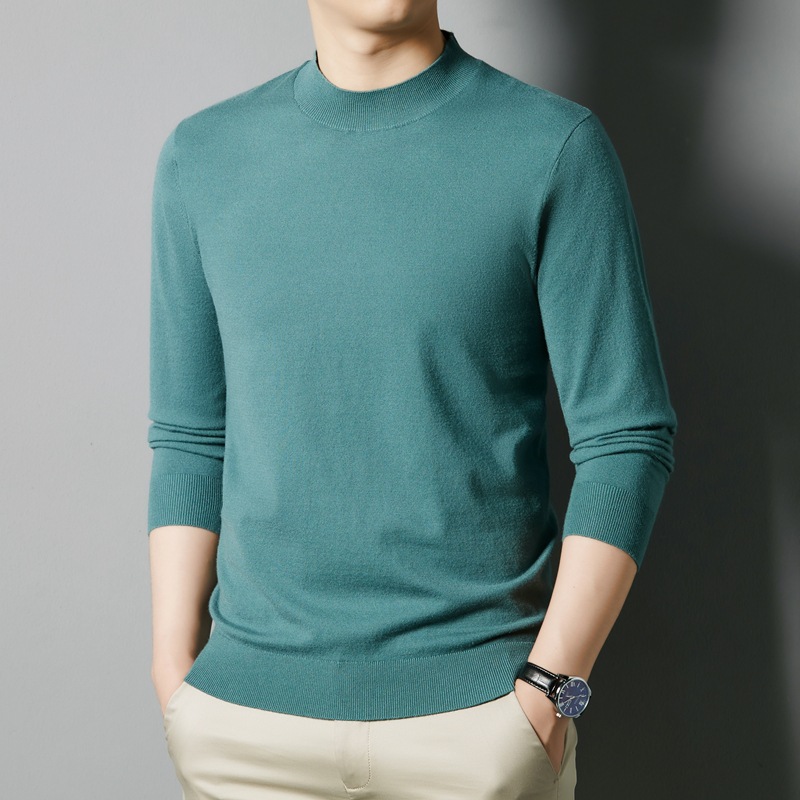 2023 스웨터 남자 봄과 가을 중년 긴팔 반팔 터틀넥 니트 탑 캐주얼 얇은 루즈베이스 셔츠