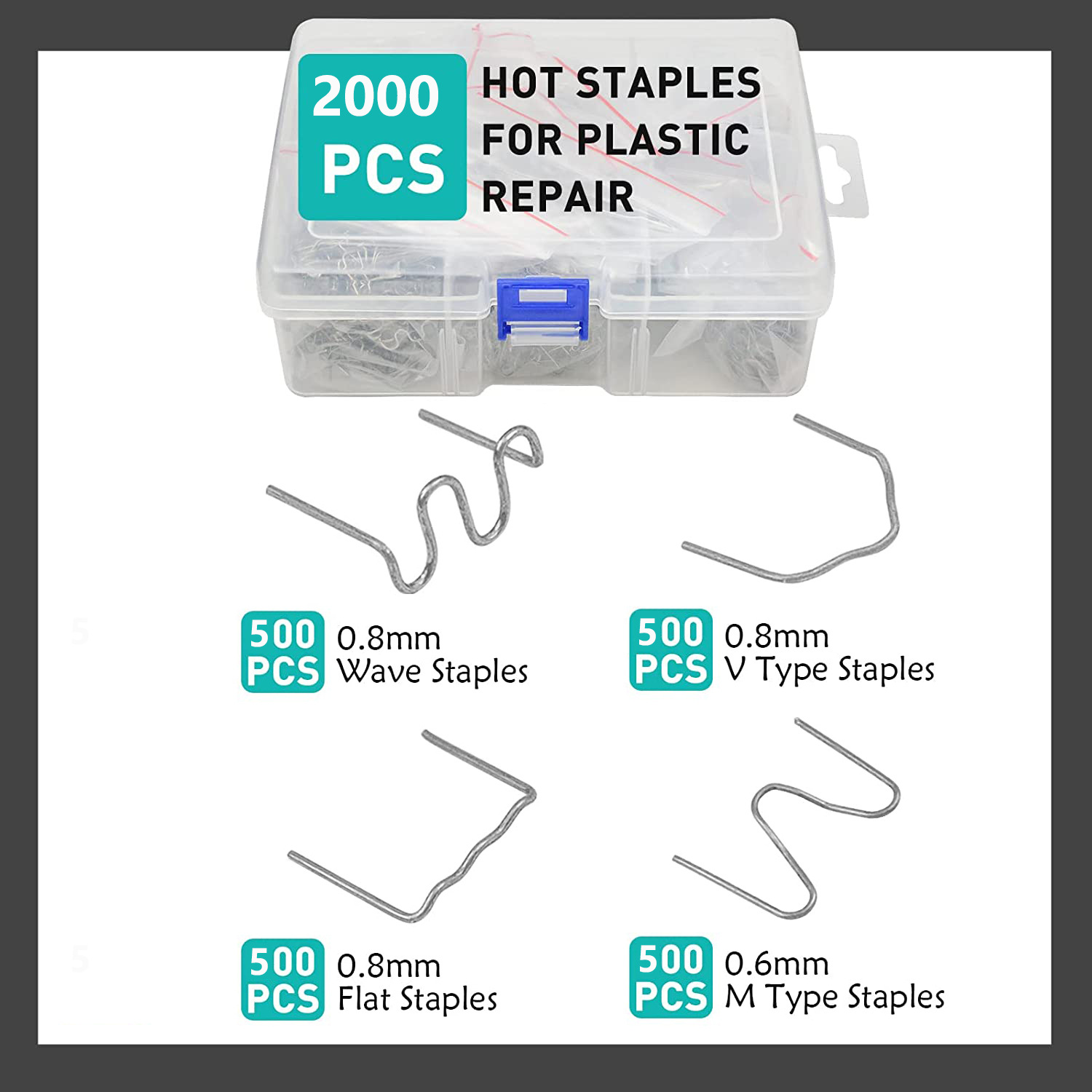 • 4 종류의 용접 손톱, 각 유형을위한 500 개의 플라스틱 상자, 총 2000 개의 손톱
