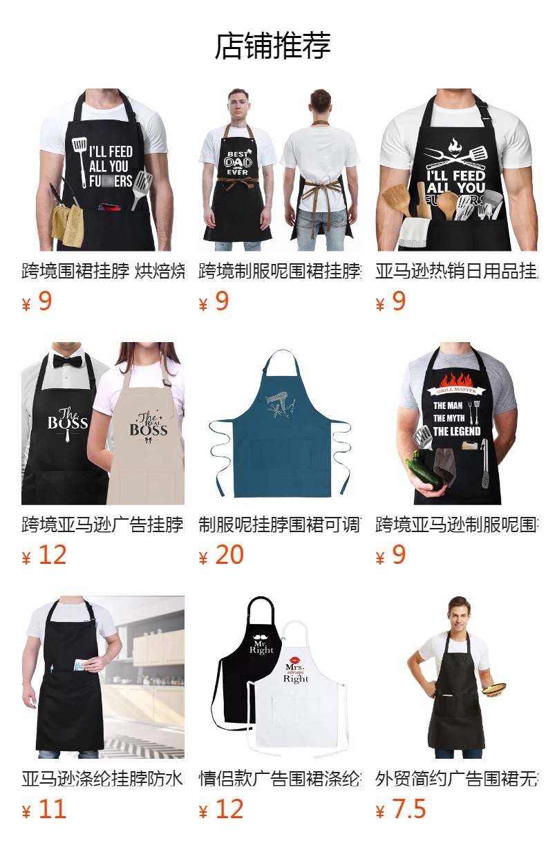 국경 간 아마존 핫 세일 폴리 에스테르 앞치마 편지 고삐 레스토랑 작업복 가정용 주방 앞치마 도매 맞춤스토어 가기