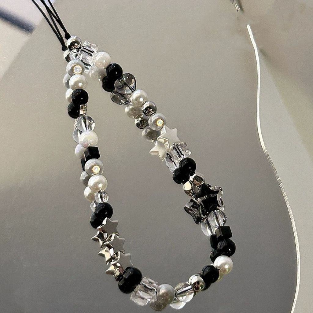 In 스타일 얼음 투명 스타 휴대 전화 끈 시원한 검은 뜨거운 소녀 diy 구슬 카메라 체인 잃어버린 로프 하이 센스 여성스토어 가기