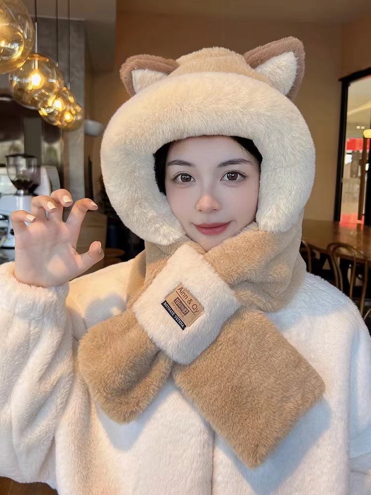 2023 새로운 한국식 모자와 스카프 올매치 귀여운 겨울 푹신한 모자 따뜻한 겨울 두꺼운 부동액 바람