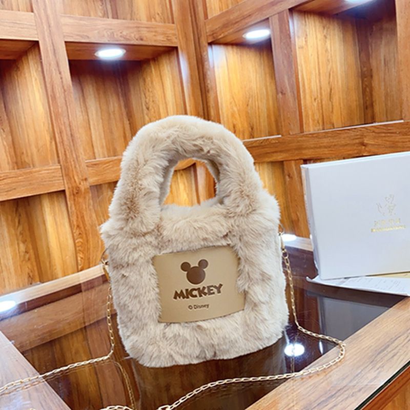2023 가을과 겨울 새로운 봉제 가방 여성용 핸드백 푹신한 모피 보관 가방 달콤한 양동이 메신저 가방