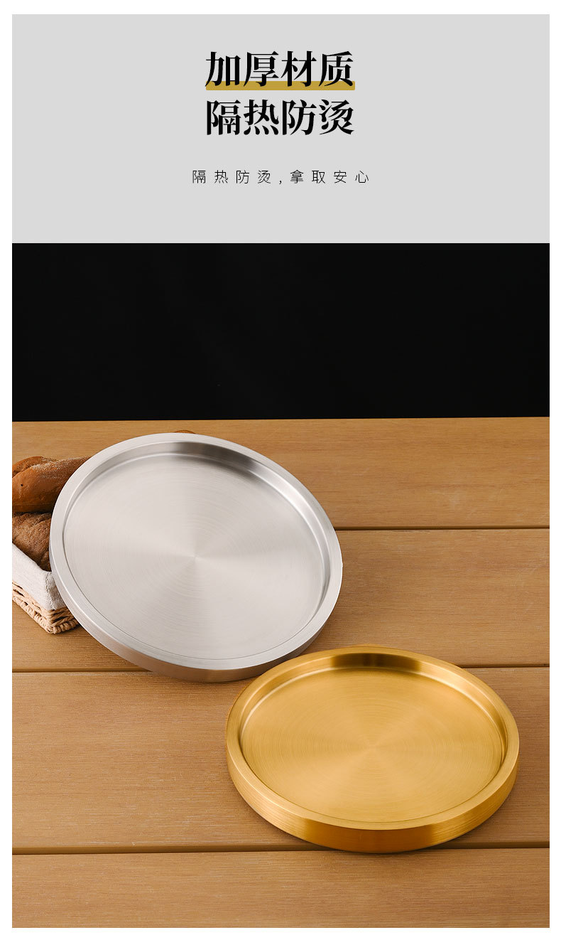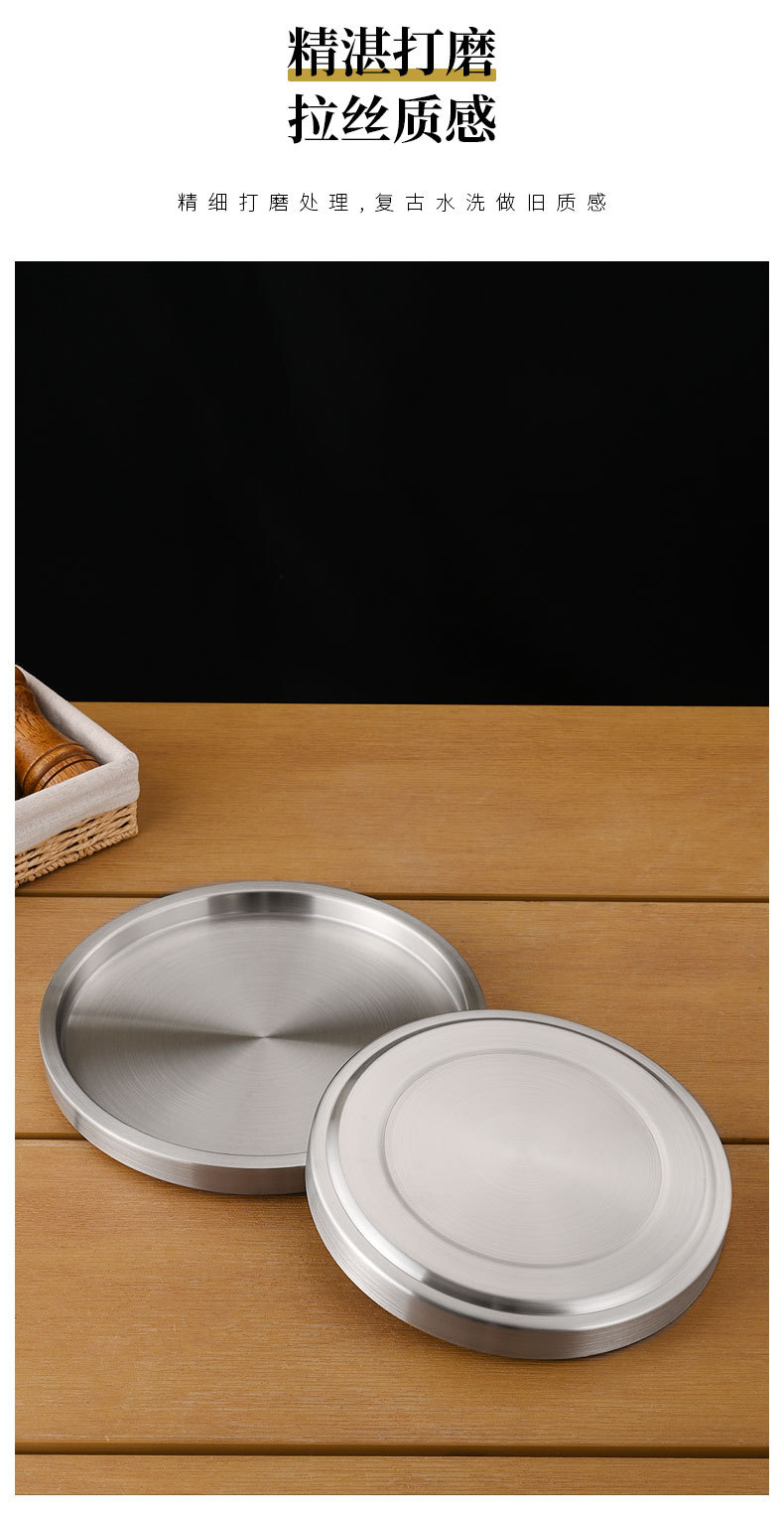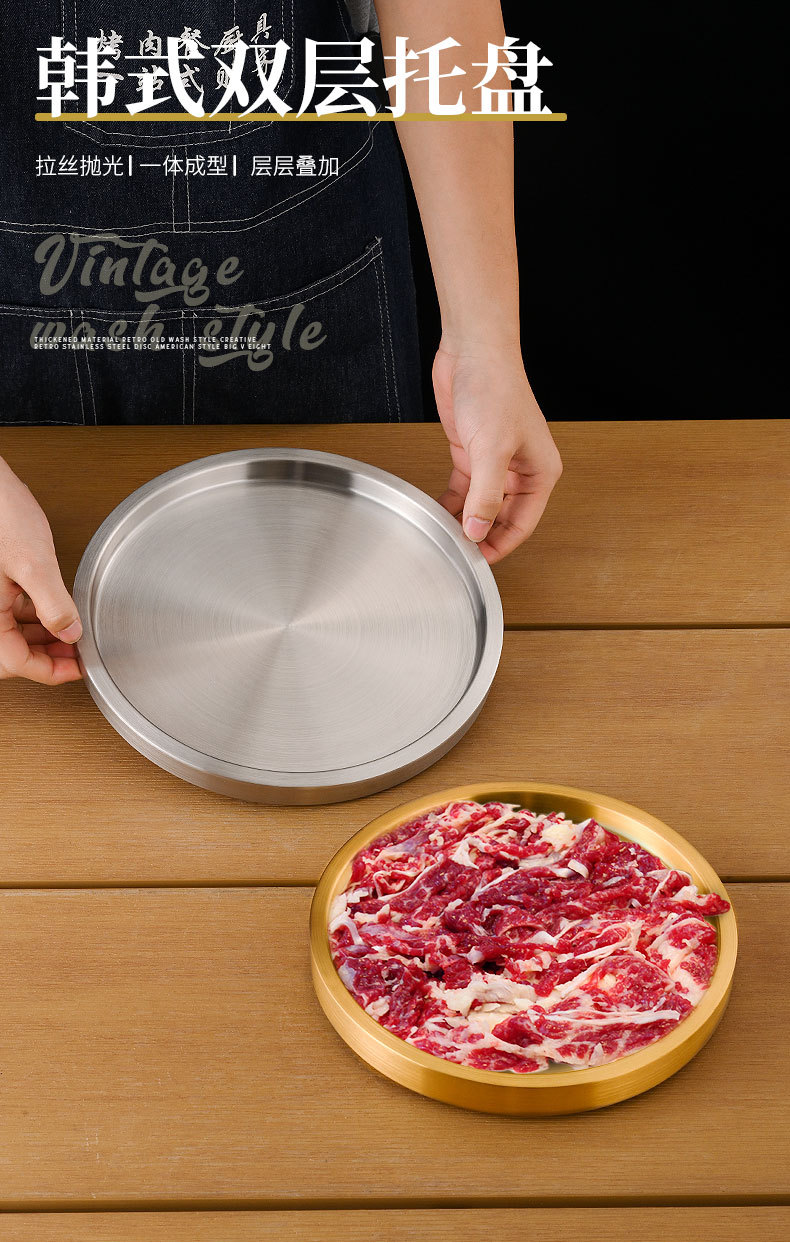 두꺼운 304 스테인레스 스틸 디스크 상업용 더블 레이어 냄비 바베큐 레스토랑 쇠고기 트레이 플랫 웨스턴 푸드 플레이트 식기