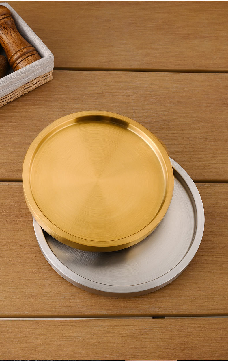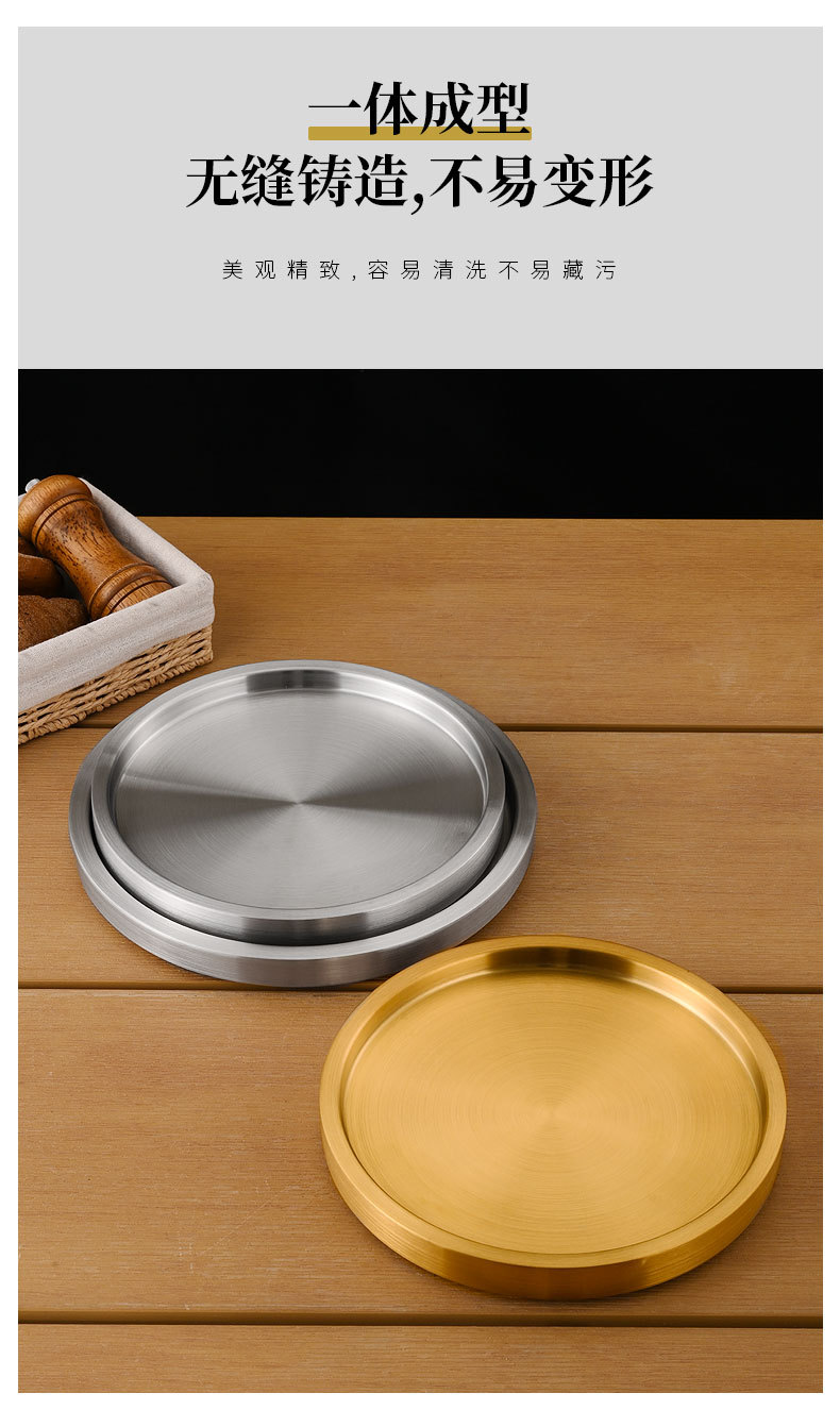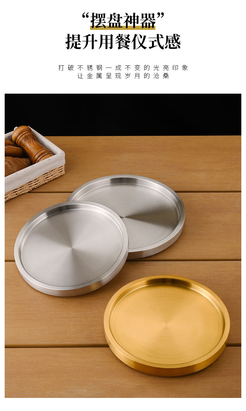 두꺼운 304 스테인레스 스틸 디스크 상업용 더블 레이어 냄비 바베큐 레스토랑 쇠고기 트레이 플랫 웨스턴 푸드 플레이트 식기