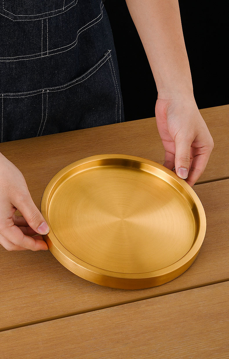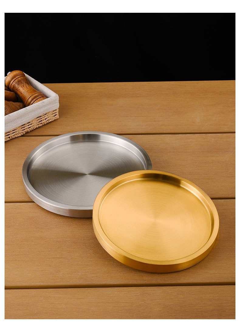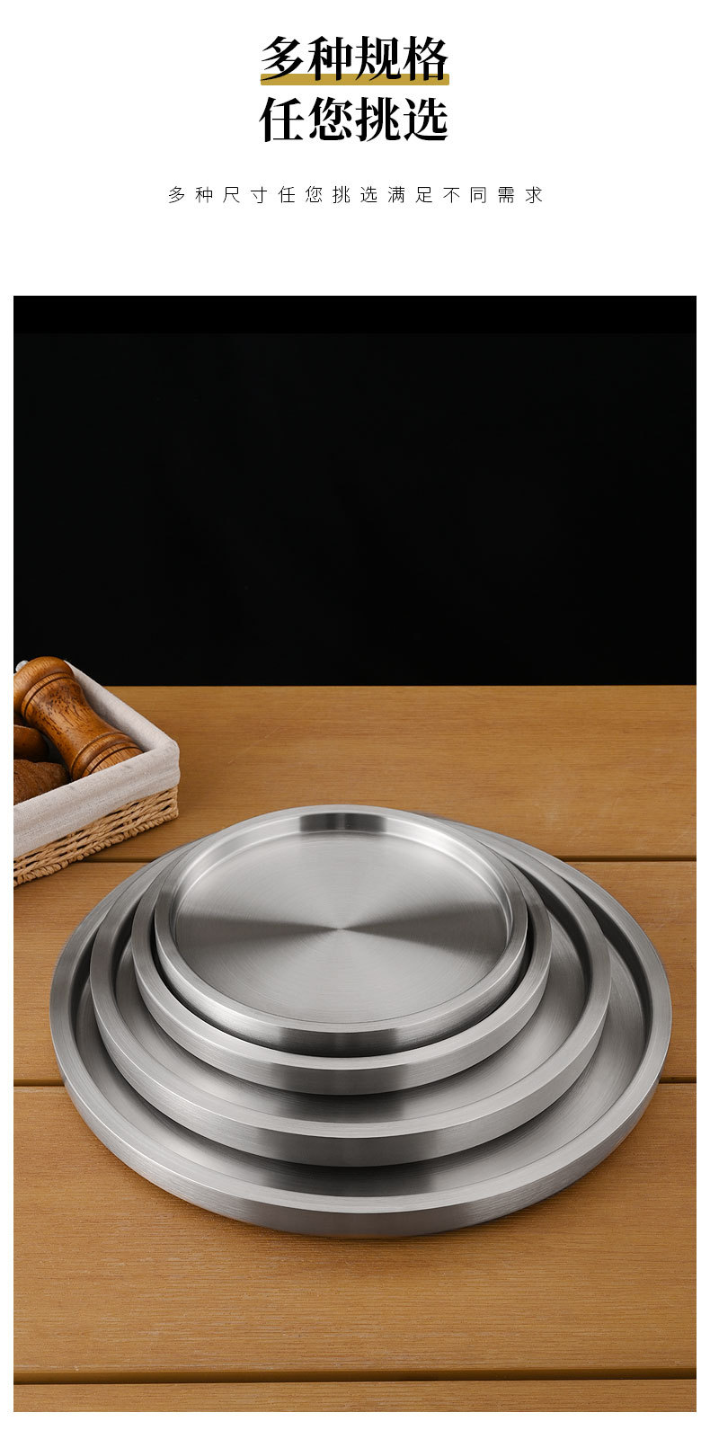 두꺼운 304 스테인레스 스틸 디스크 상업용 더블 레이어 냄비 바베큐 레스토랑 쇠고기 트레이 플랫 웨스턴 푸드 플레이트 식기스토어 가기