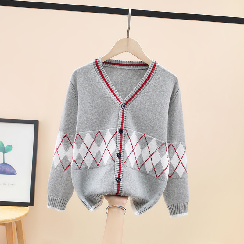 남아용 스웨터 자카드 마름모 무늬 가디건 봄 가을 2024 신상 아동 니트웨어 스타일리시한 남아 가을옷