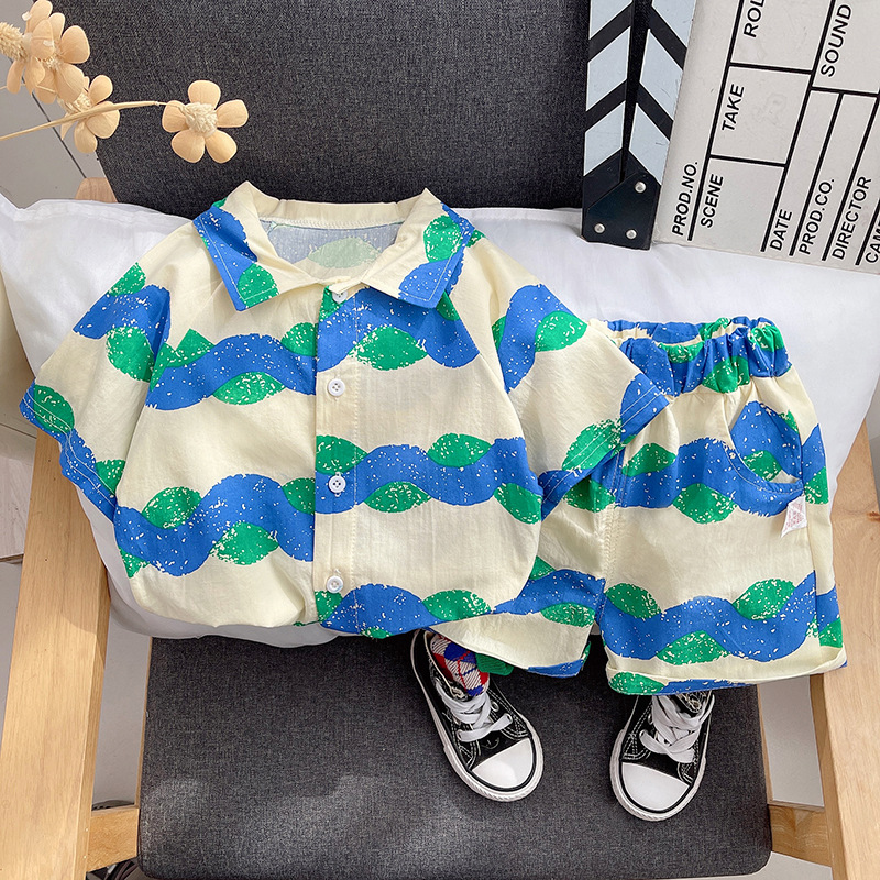 남자들의 여름 새 반팔 레이저 셔츠 세트 중소 어린이 베이비 레저 홀리데이 스타일 투피스 세트 대외 무역 패션스토어 가기