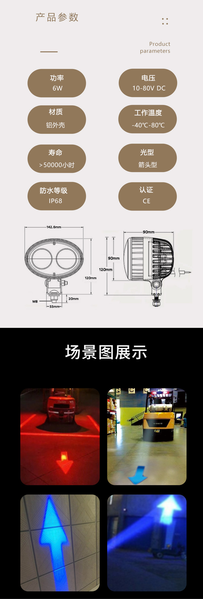 국경 전용 LED 하이라이트 스포트라이트 지게차 반전 안전 조명 경고 램프 블루 라이트 지게차 표시등