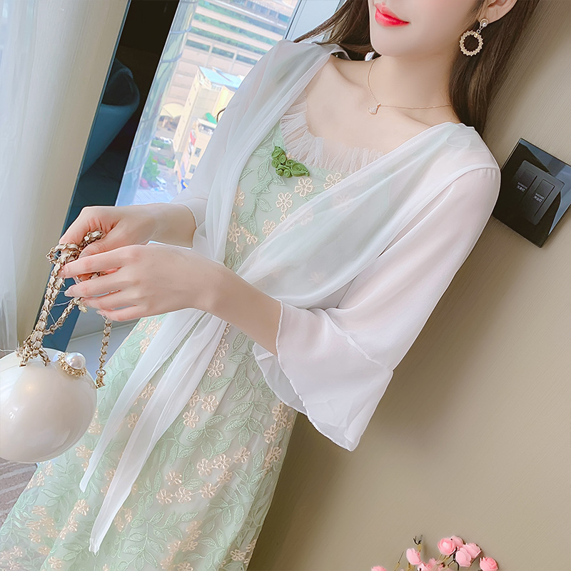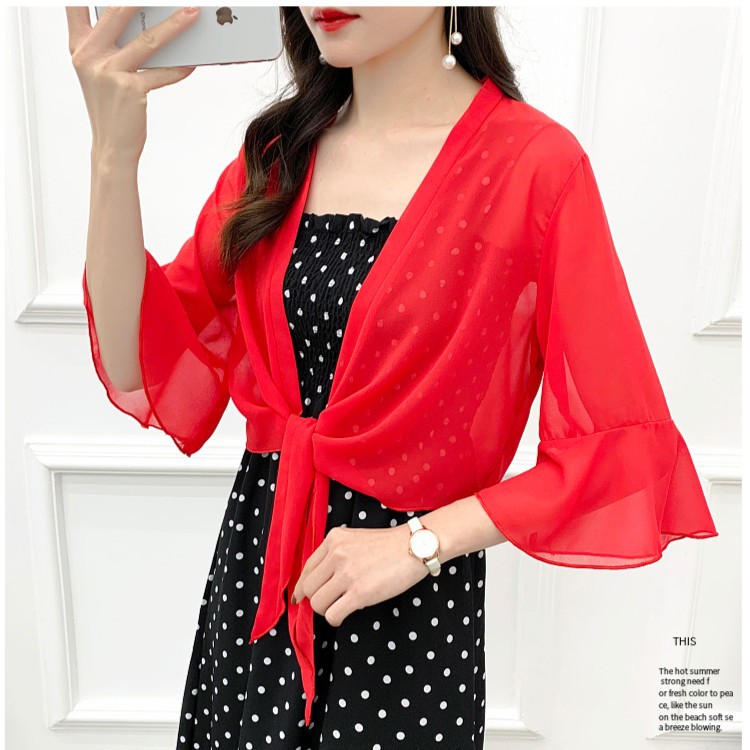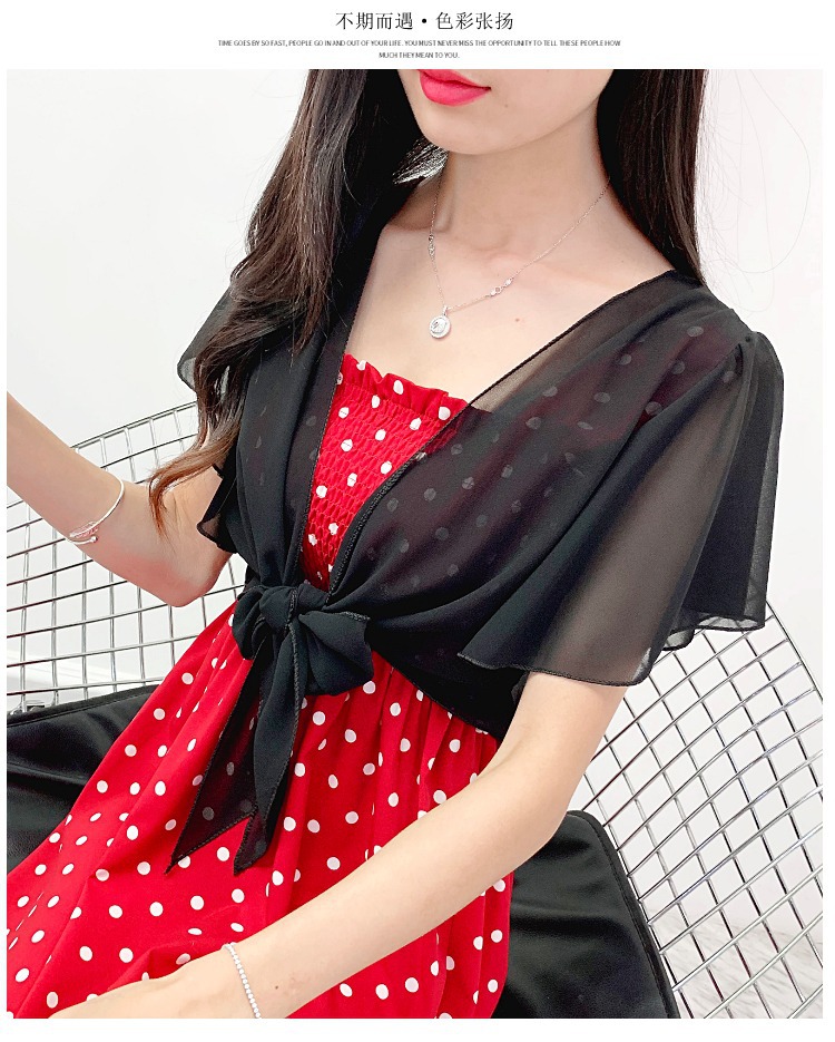 작은 코트 서스펜더 스커트 여름 매칭 스커트 쉬폰 선 스크린 카디건 얇은 여성용 숄 아우터 블라우스스토어 가기