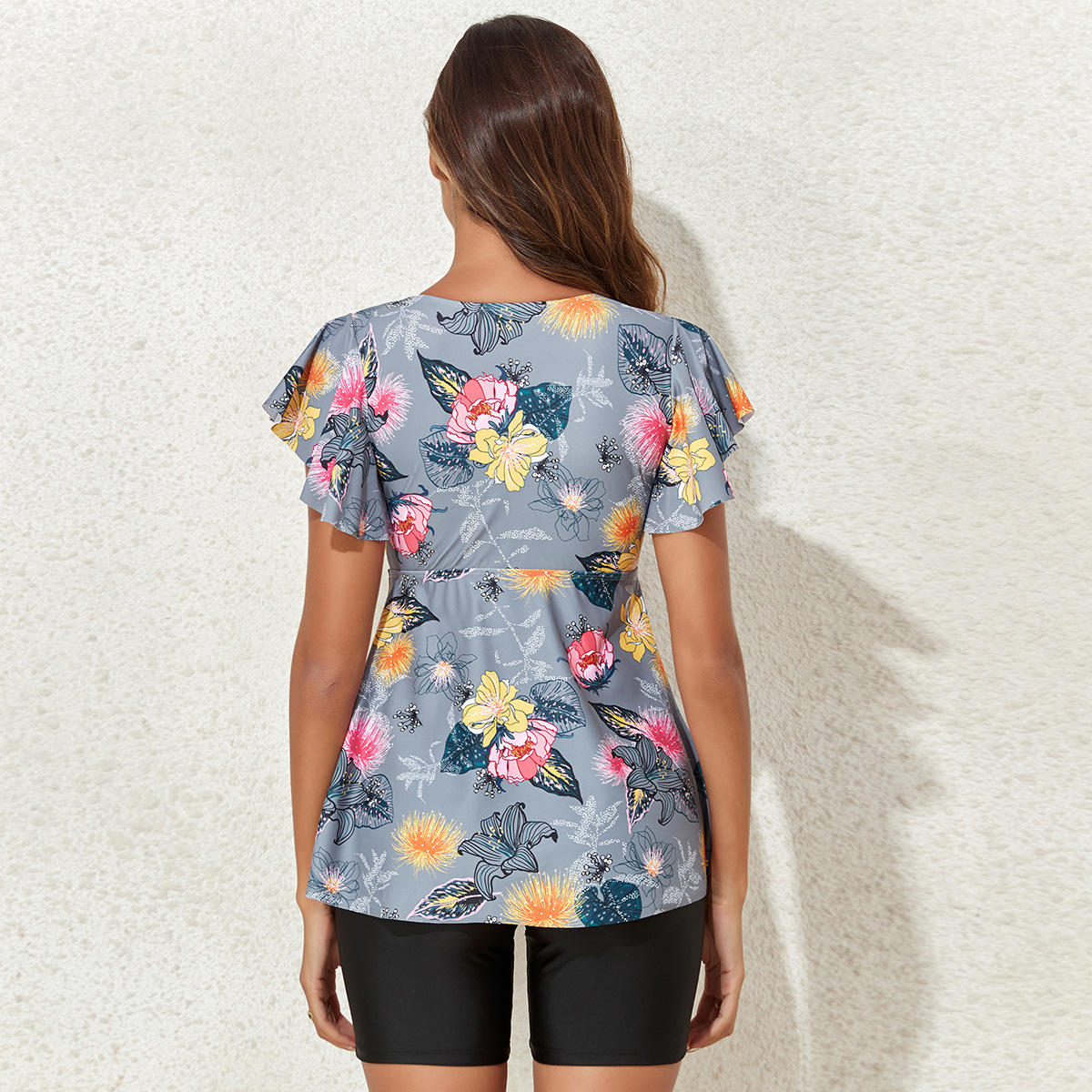 2024 아마존 새로운 스플릿 수영복 프린트 스커트 보수 패션 여성 탱키니 유럽과 미국 수영복스토어 가기