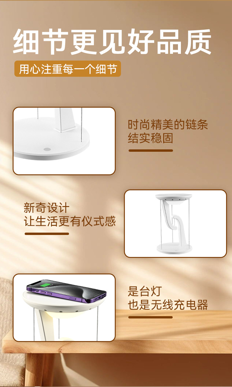 크로스보더 크리에이티브 침실용 무중력 LED 테이블 램프, 휴대폰 고속 무선 충전, 분위기 조명, 야간 조명 장식품스토어 가기