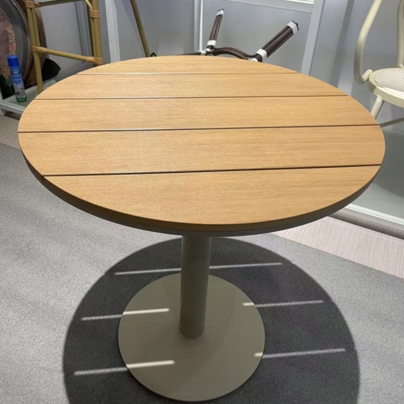 야외 안뜰 플라스틱 나무 의자 정원 빌라 개폐식 긴 테이블 방수 간단한 레저 야외 부식 방지 목재 테이블과 의자 조합