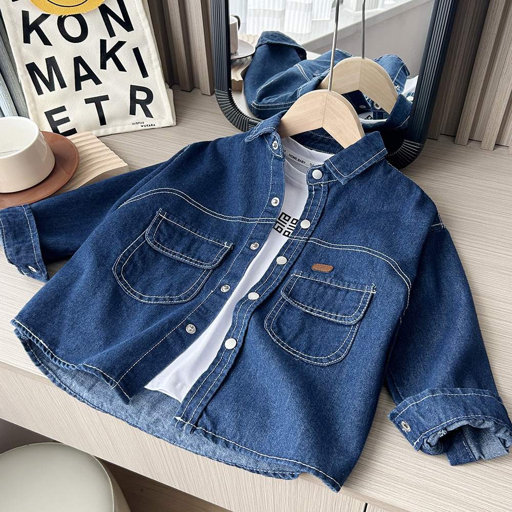 아동복 남성용 부드러운 데님 셔츠 봄과 가을 새로운 한국식 서양식 카디건 얇은 코트 중 · 대형 학생