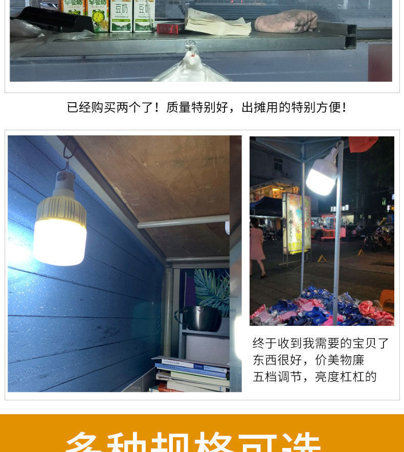 [지원 세대] 충전 전구 정전 비상 야시장 실속 홈 실속 조명 캠핑 슈퍼 밝은 LED