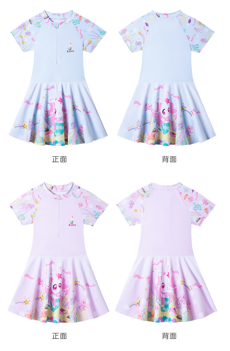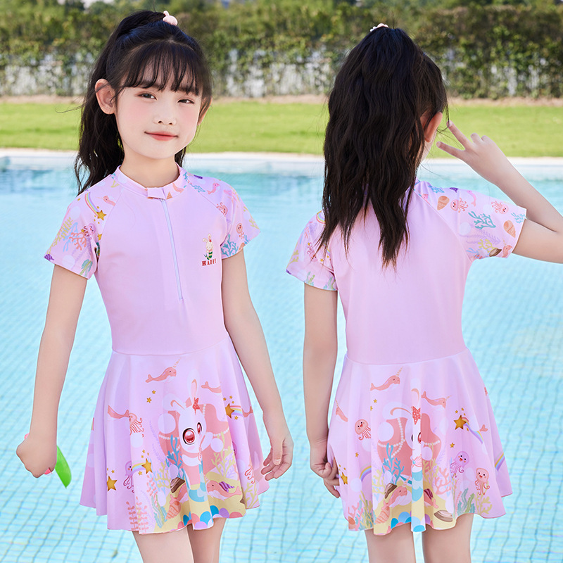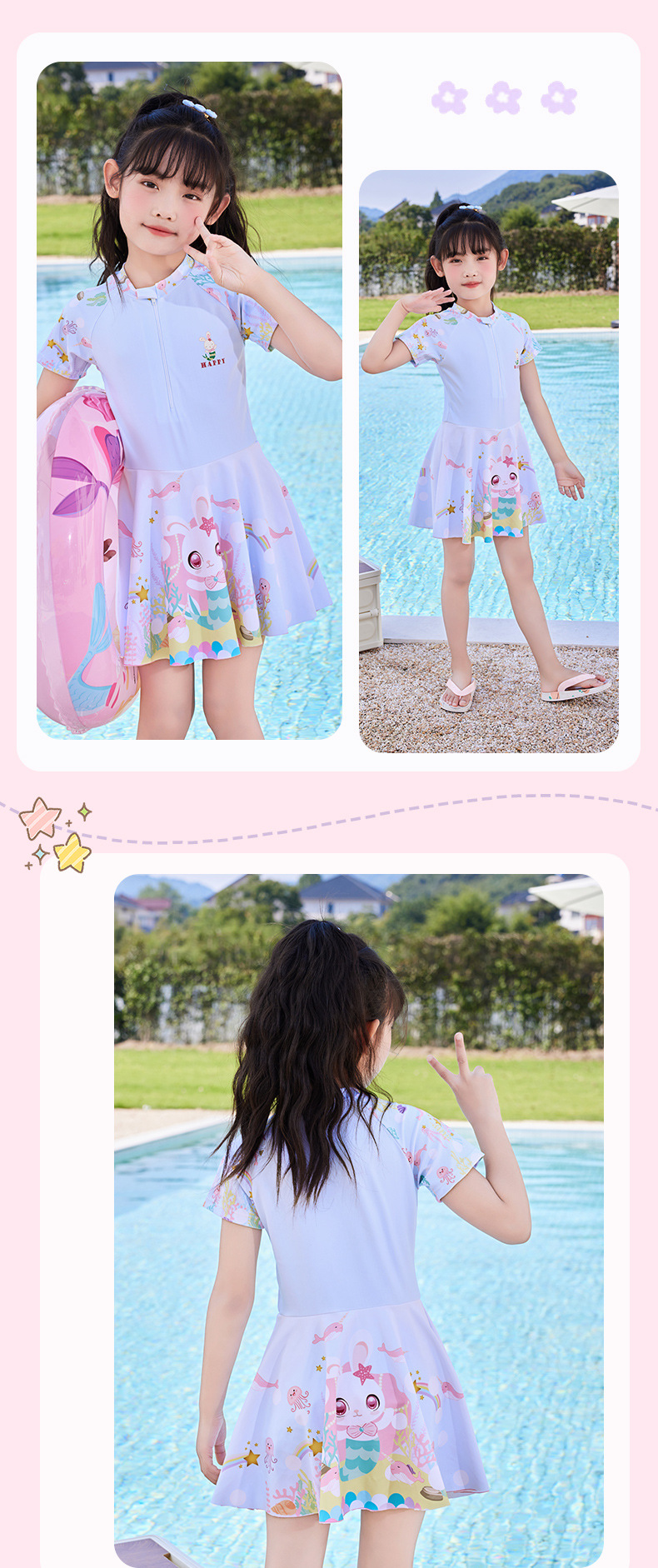 새로운 만화 토끼 인쇄 어린이 수영복 귀여운 소녀 한국 스타일 수영복 중 큰 어린이 수영 스커트 휴일 물 수영복