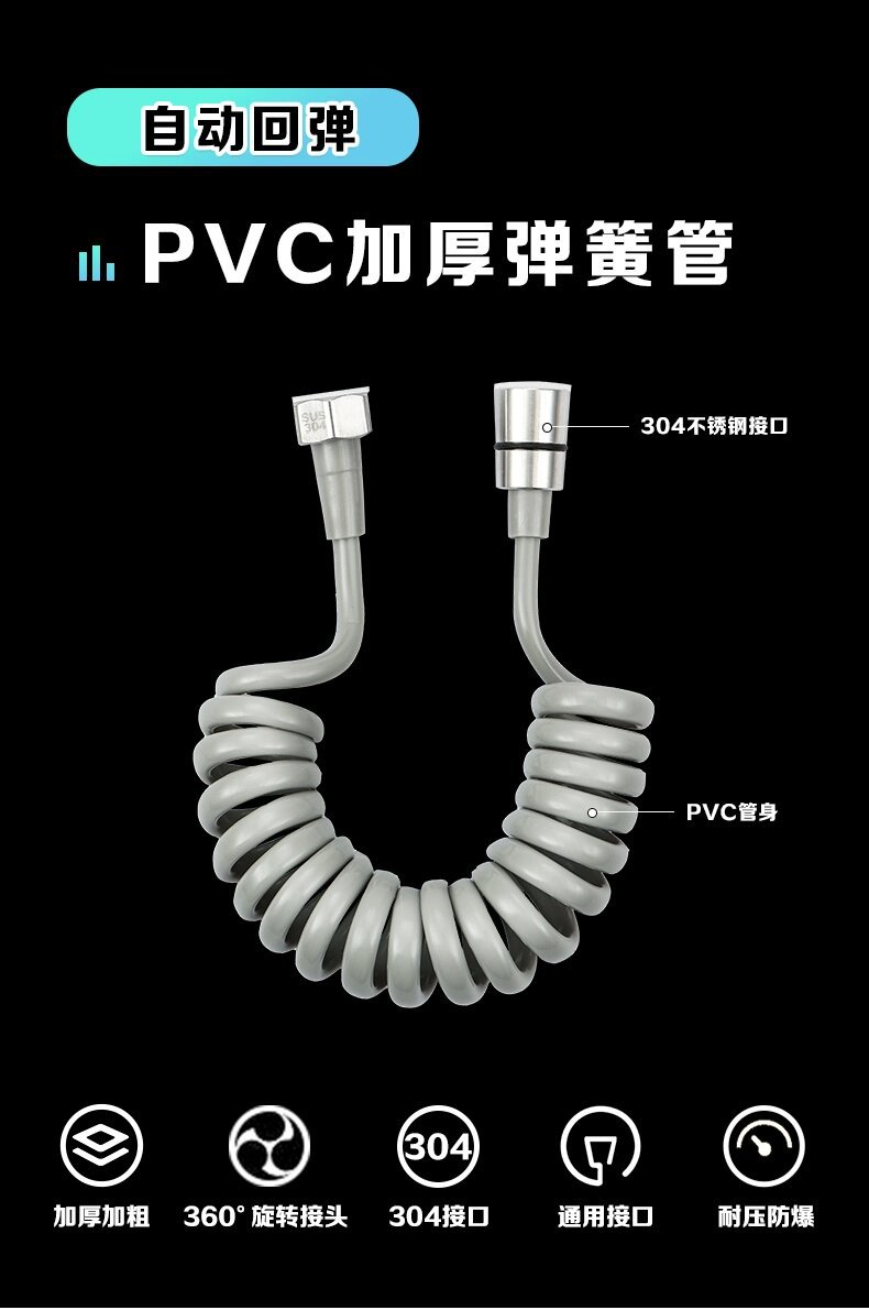 대형 흐름 스테인레스 스틸 샤워 호스 화장실 여성 청소기 폭발 방지 전화선 튜브 스프레이 건 텔레스코픽 스프링 튜브