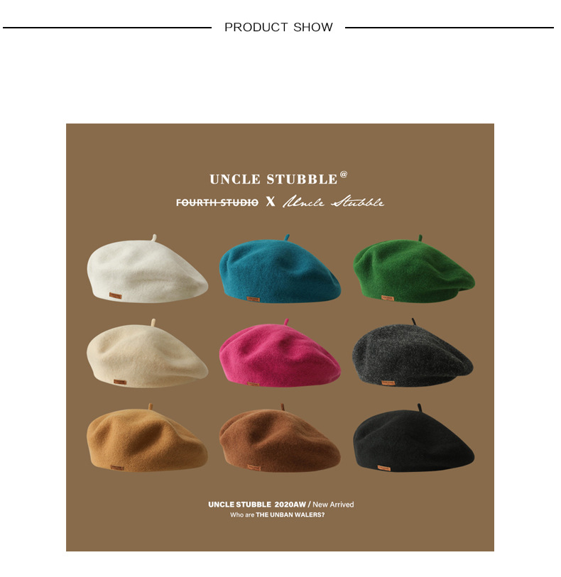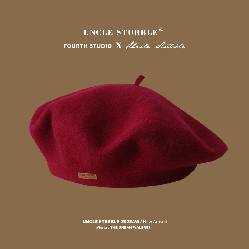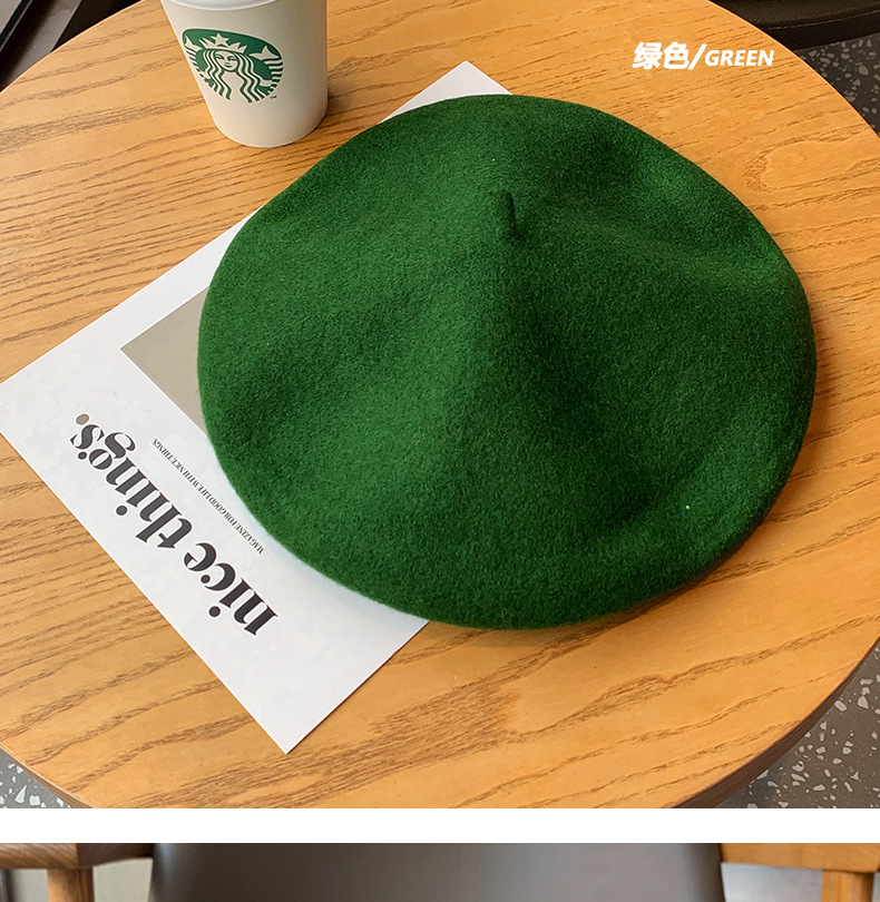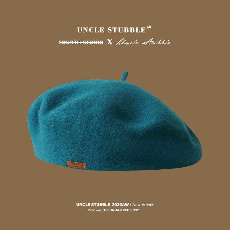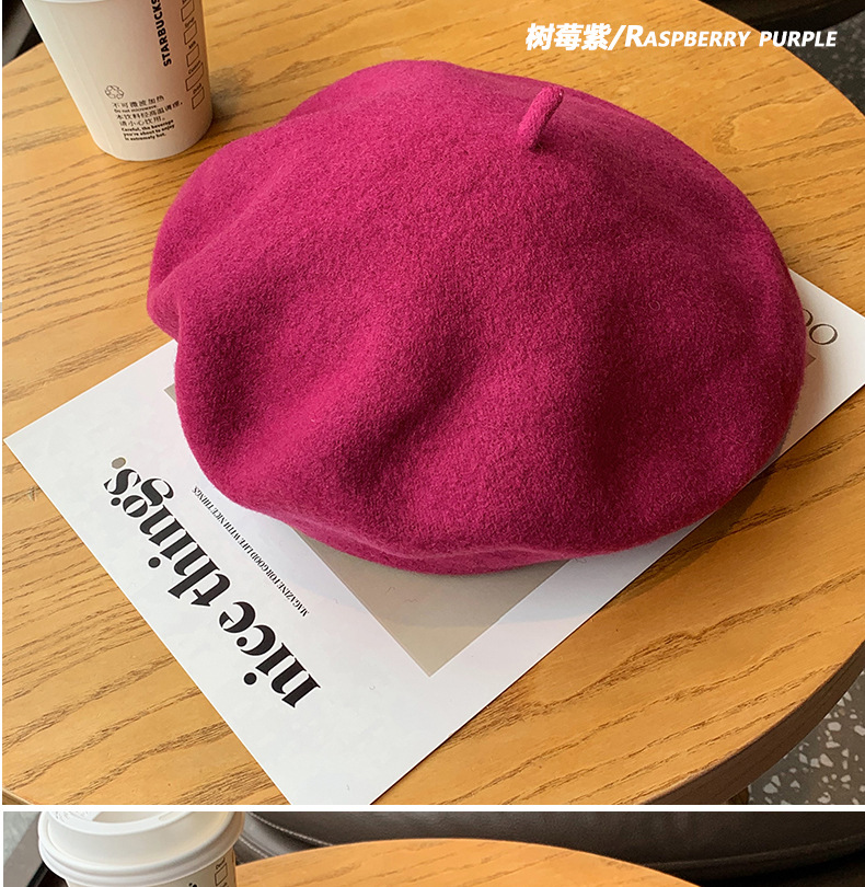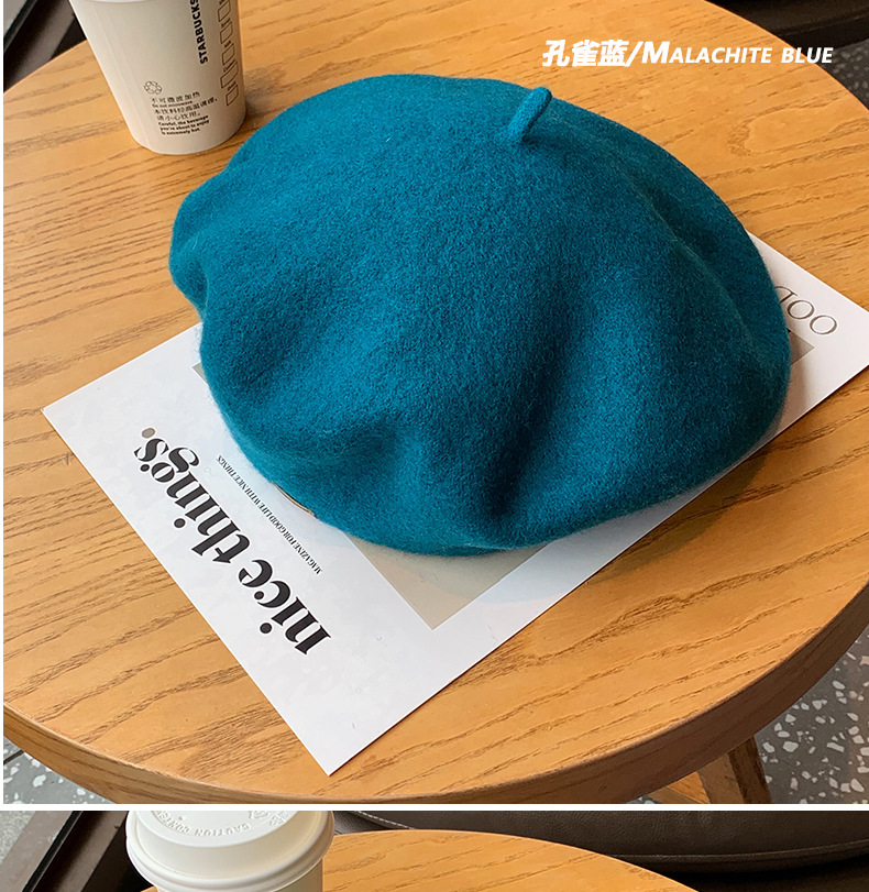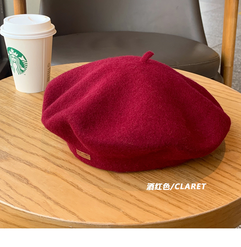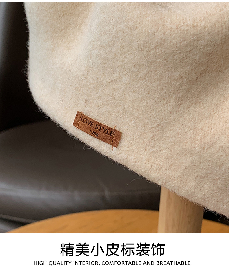 겨울 패션 베레모 한국식 가죽 라벨 올 매치 울 베레모 가을과 겨울 복고풍 화가 모자 소녀