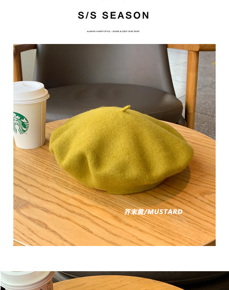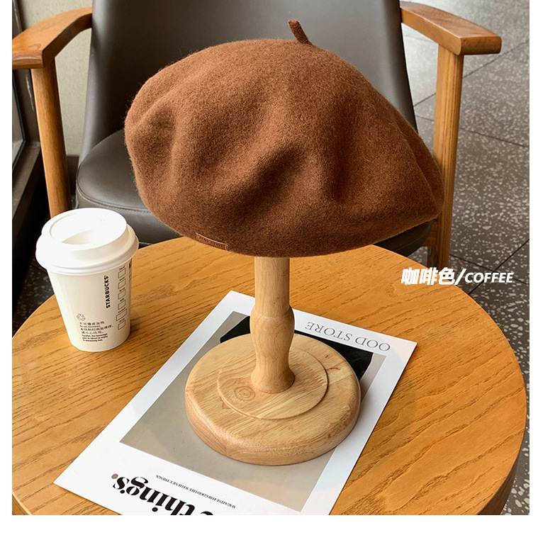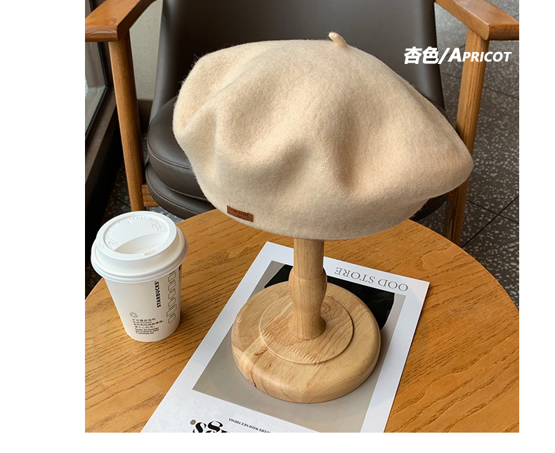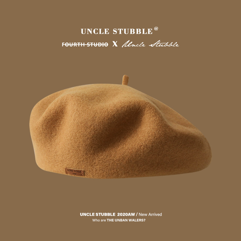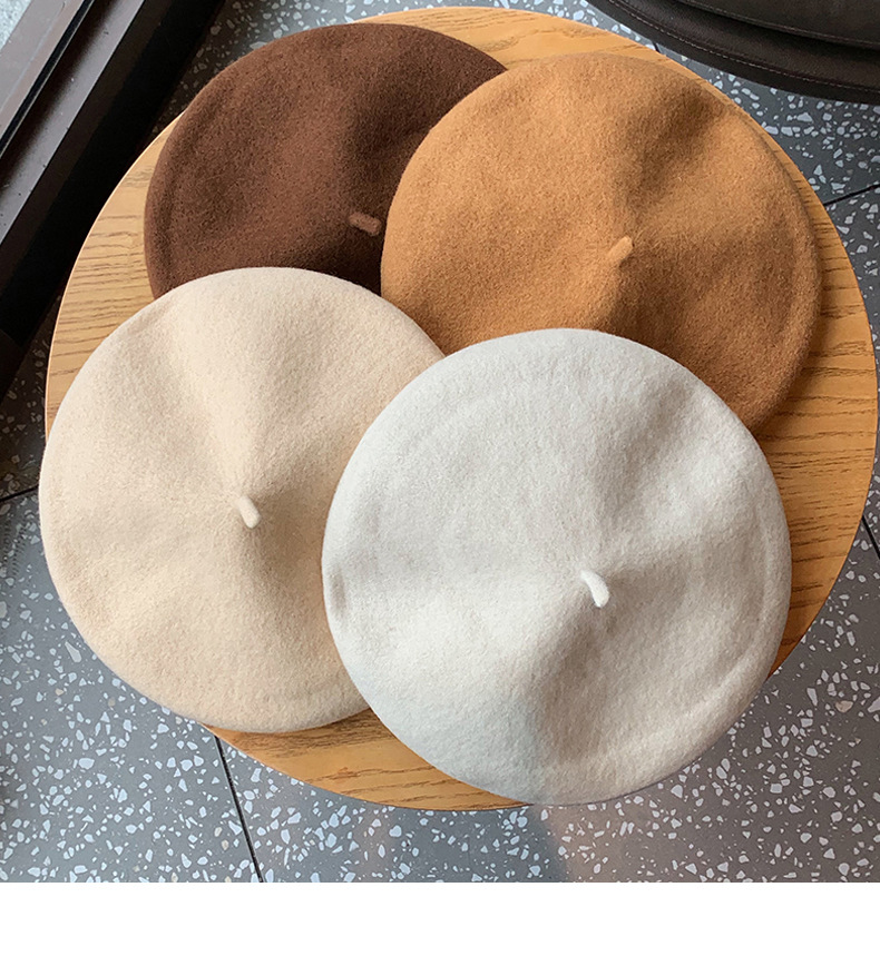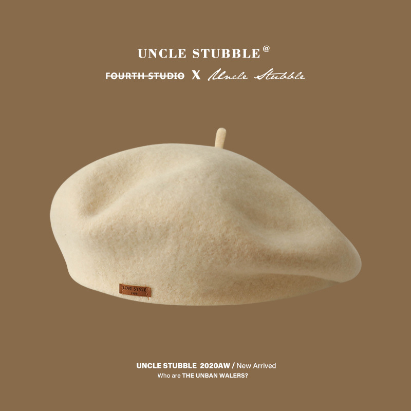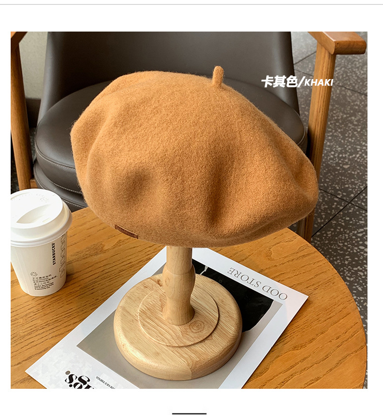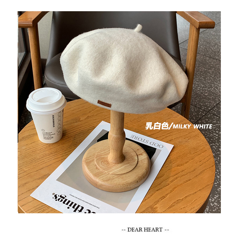 겨울 패션 베레모 한국식 가죽 라벨 올 매치 울 베레모 가을과 겨울 복고풍 화가 모자 소녀스토어 가기