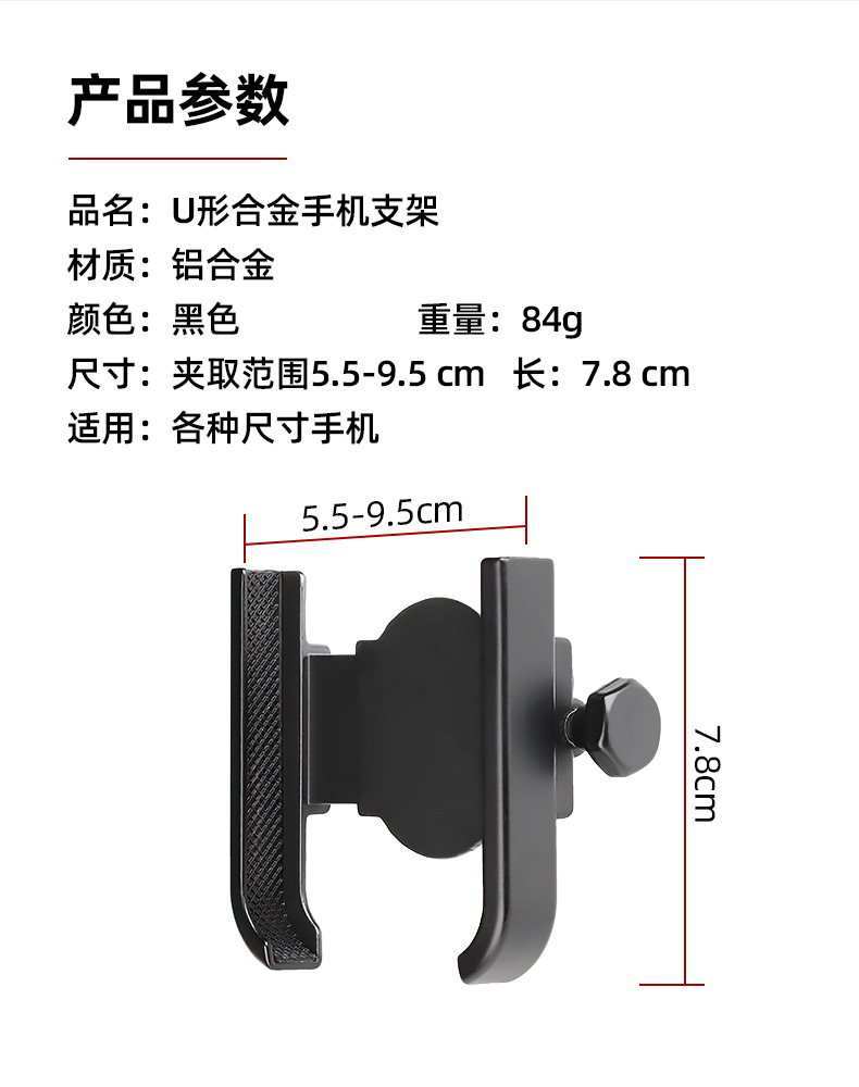 1/4 나사 1/4 인치 알루미늄 합금 GoPro 카메라 휴대 전화 촬영 U 자형 브래킷 금속 휴대 전화 클립스토어 가기