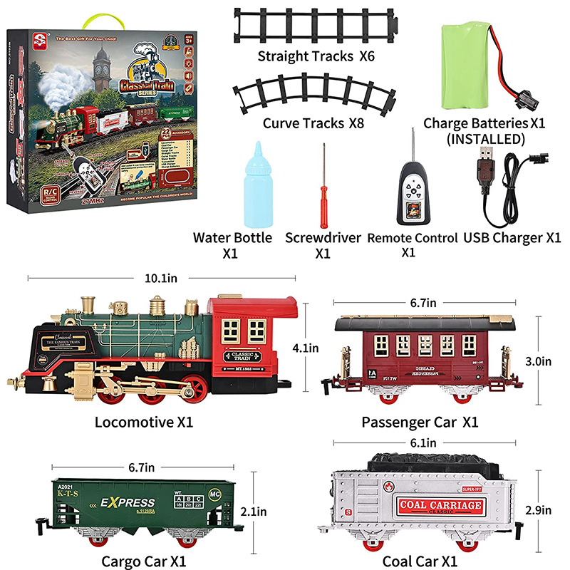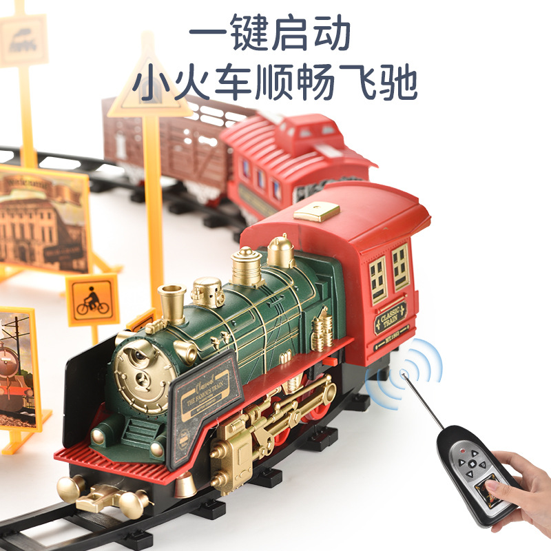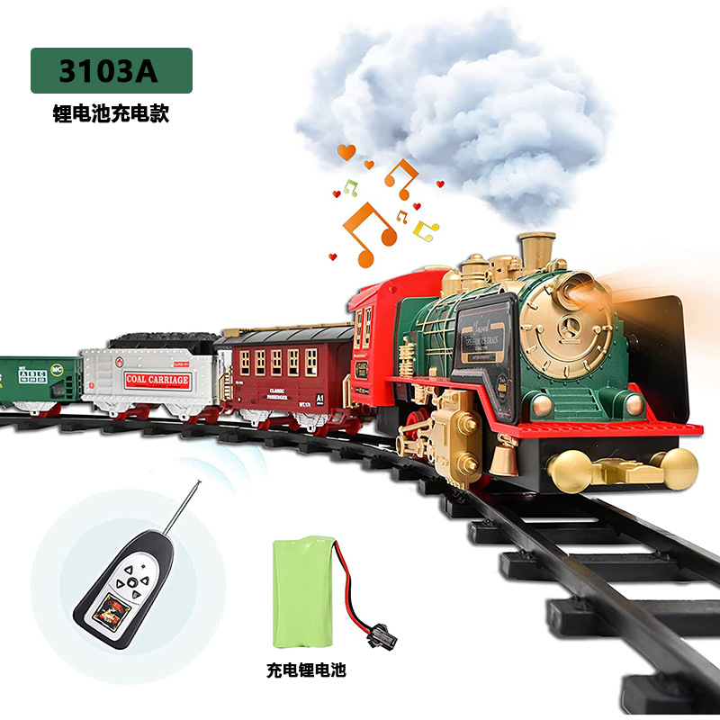 크리스마스 선물 장난감을 세트 소리와 가벼운 증기 전기 기차 국경 원격 제어 연기 전기 트랙 기차