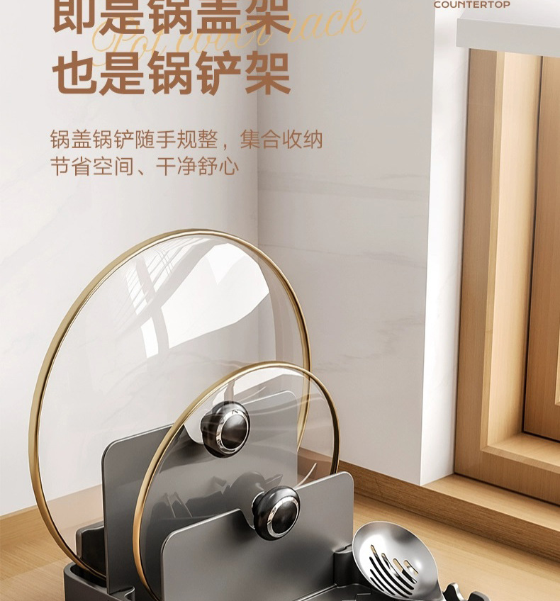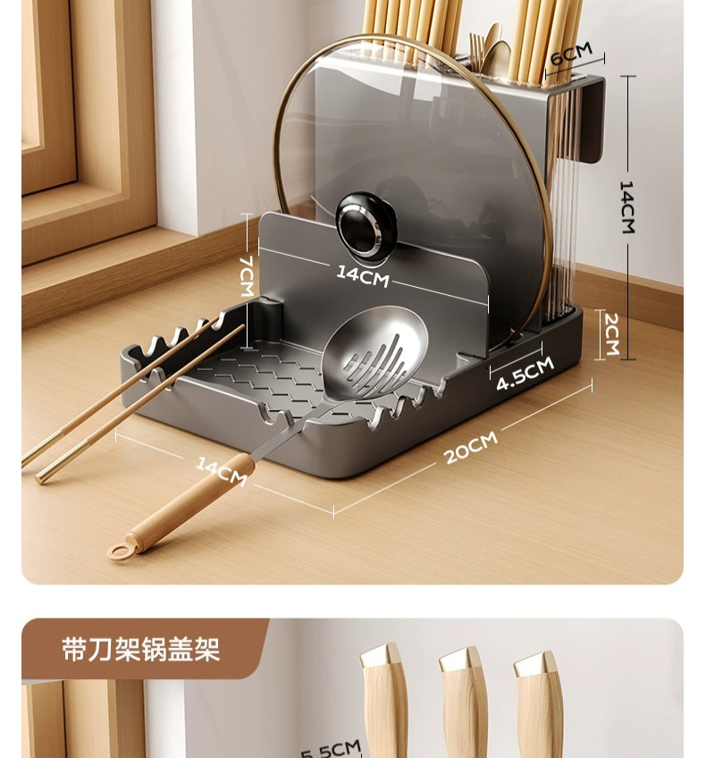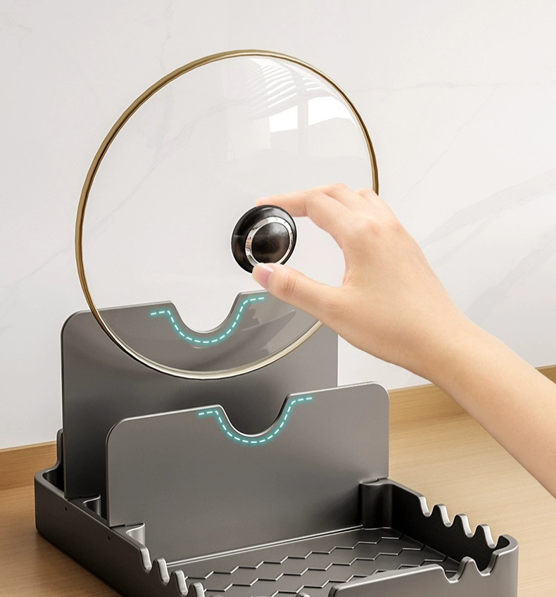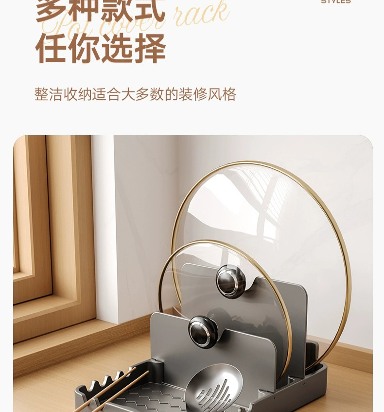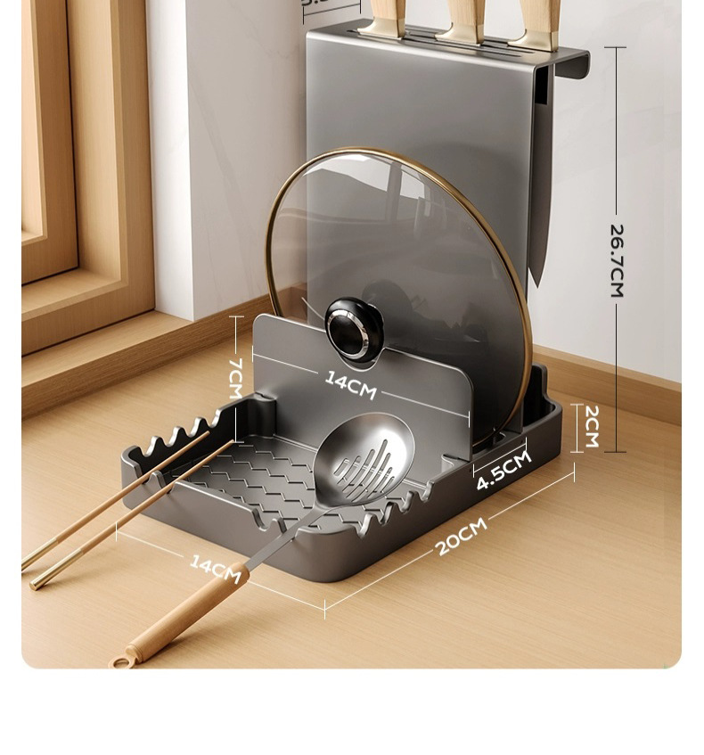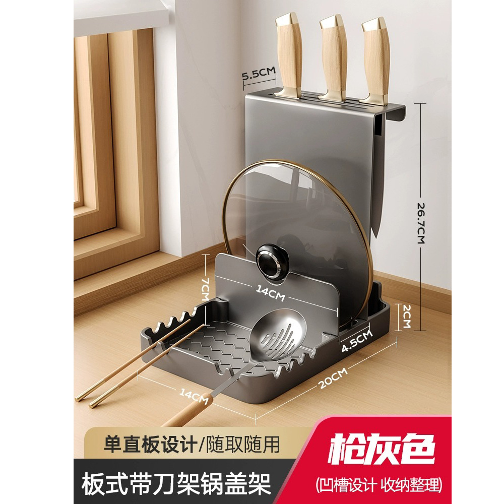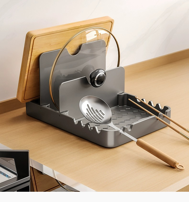 총 회색 주방 냄비 커버 랙 주걱 홀더 스토리지 랙 커팅 보드 다기능 가정용 테이블 스탠드 도마 스토리지 랙
