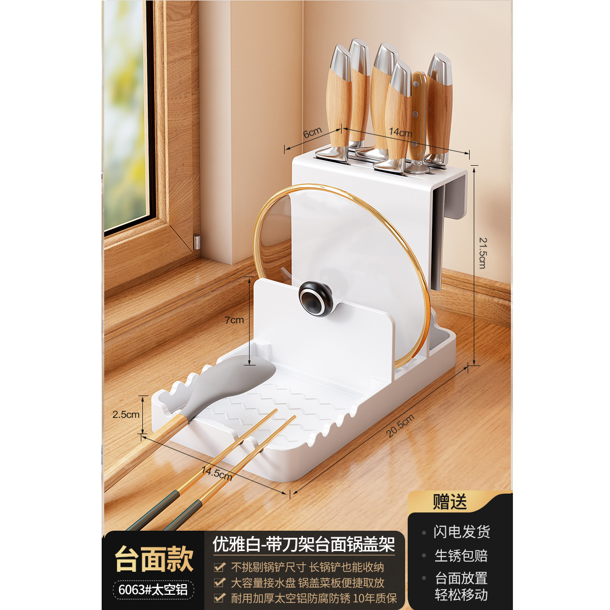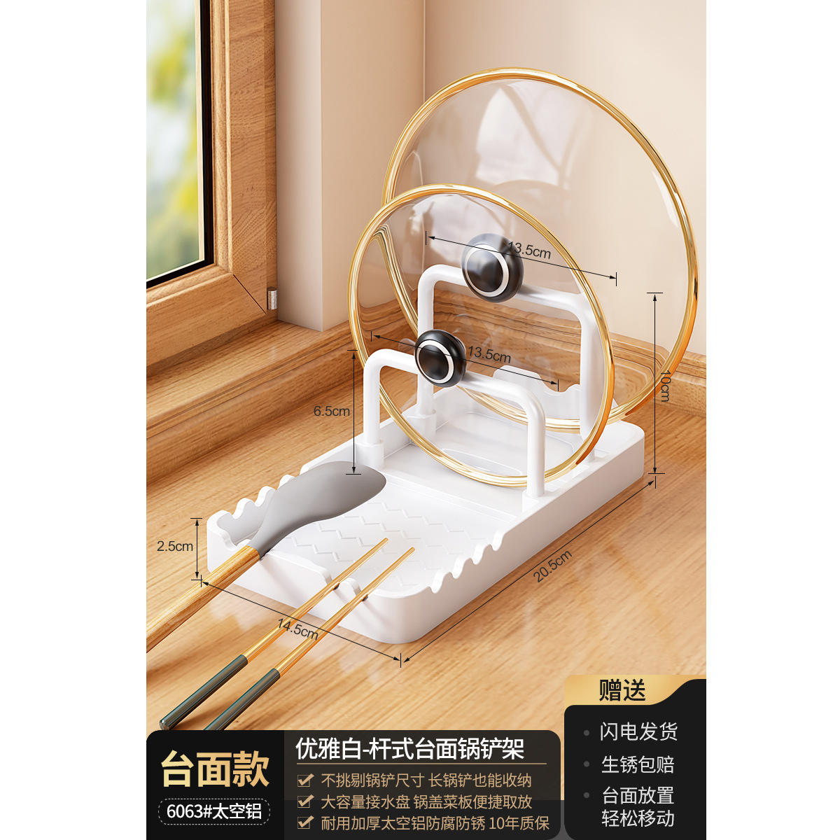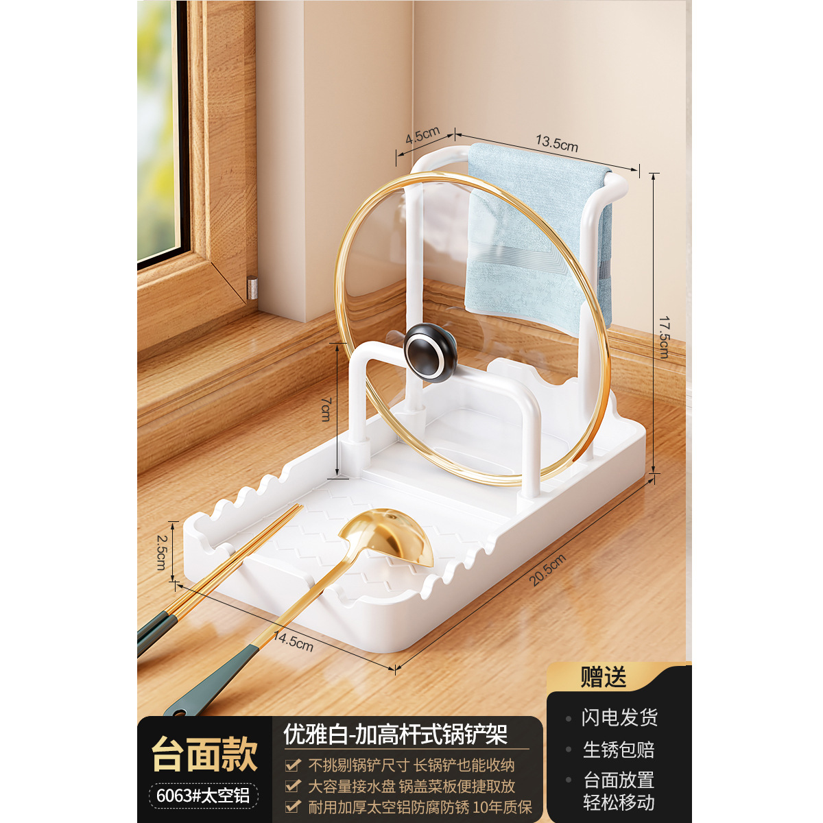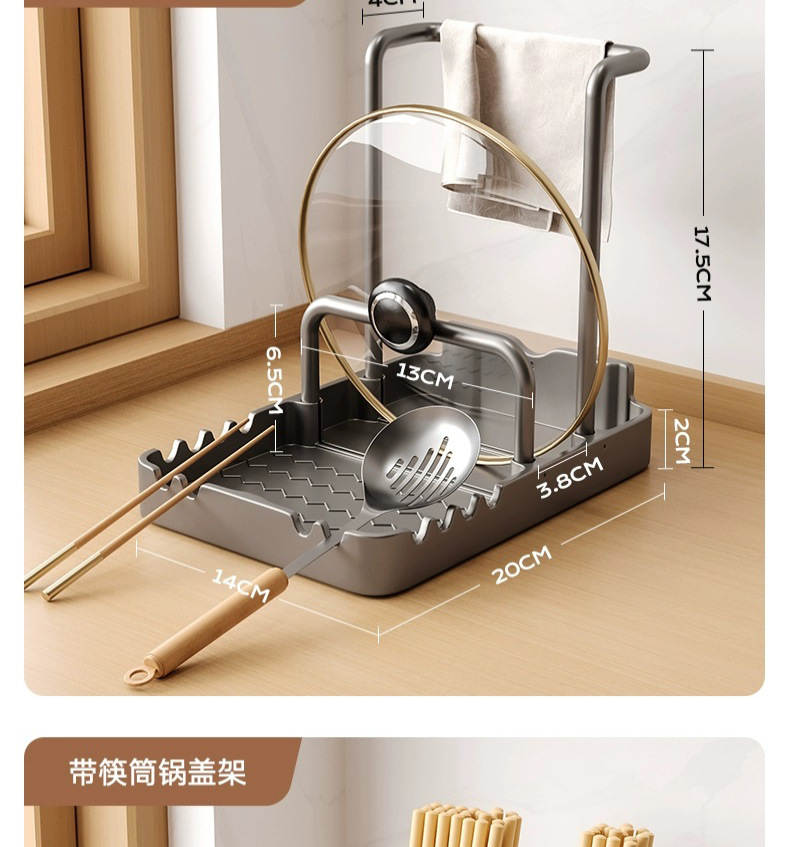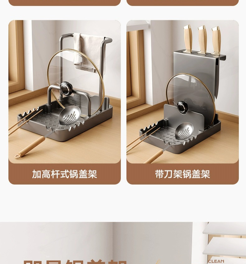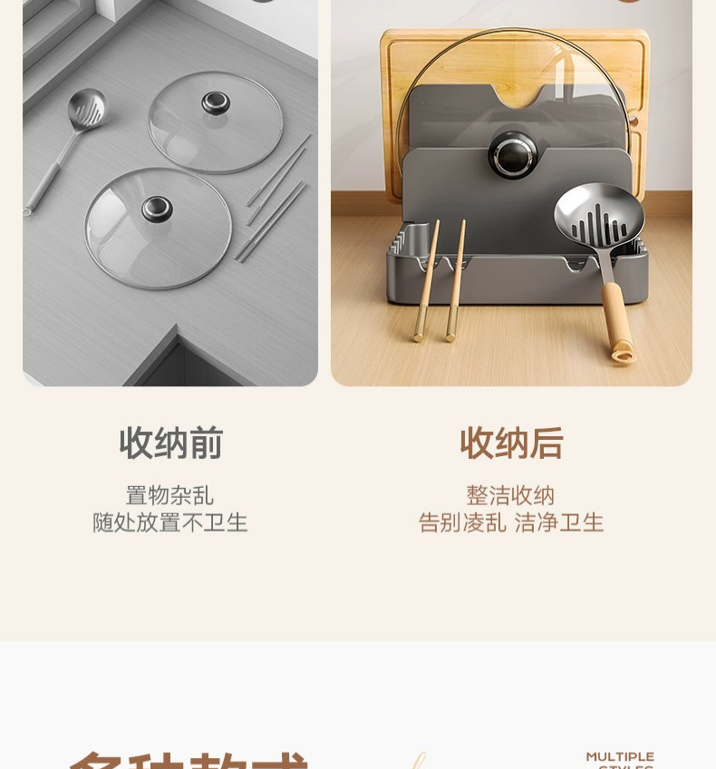 총 회색 주방 냄비 커버 랙 주걱 홀더 스토리지 랙 커팅 보드 다기능 가정용 테이블 스탠드 도마 스토리지 랙