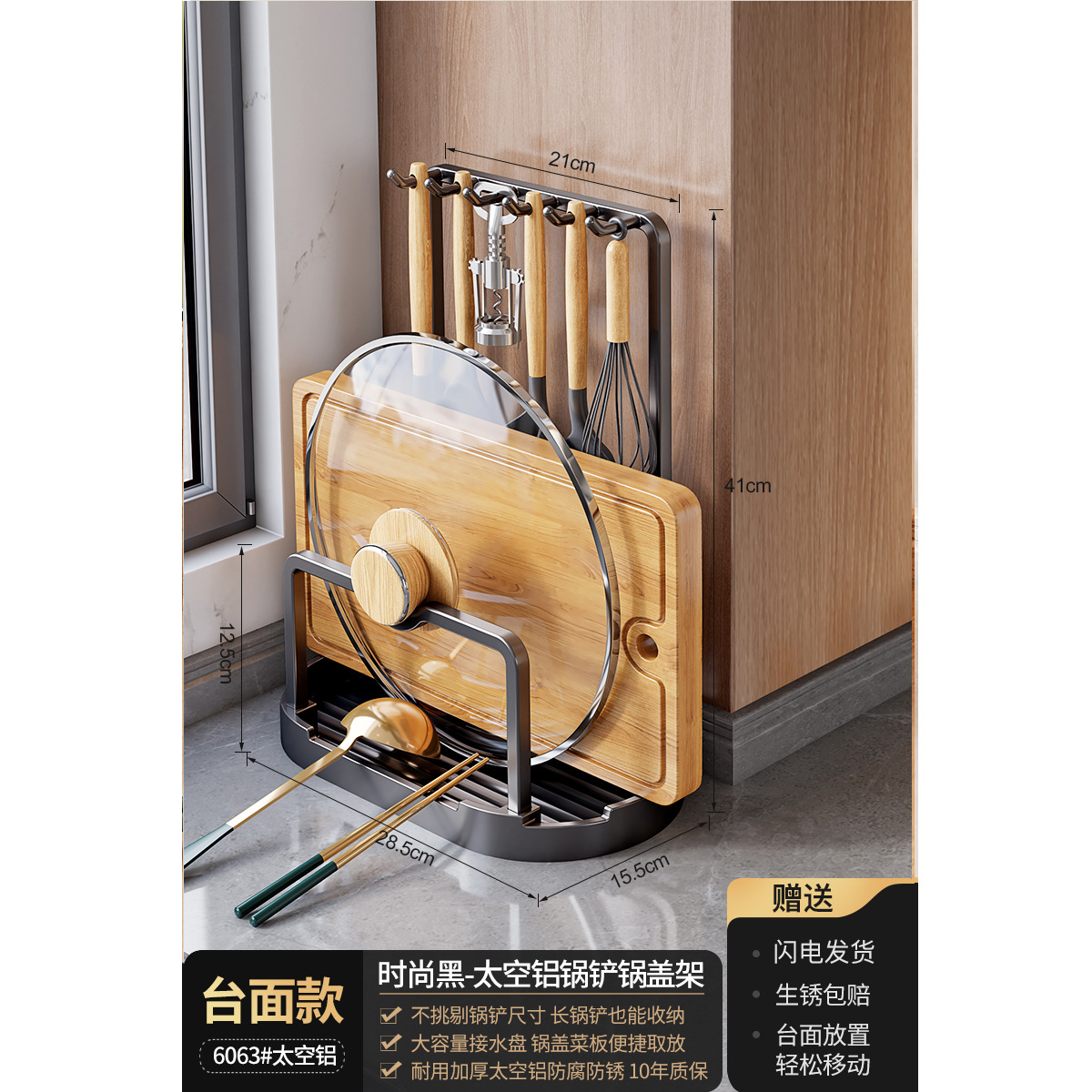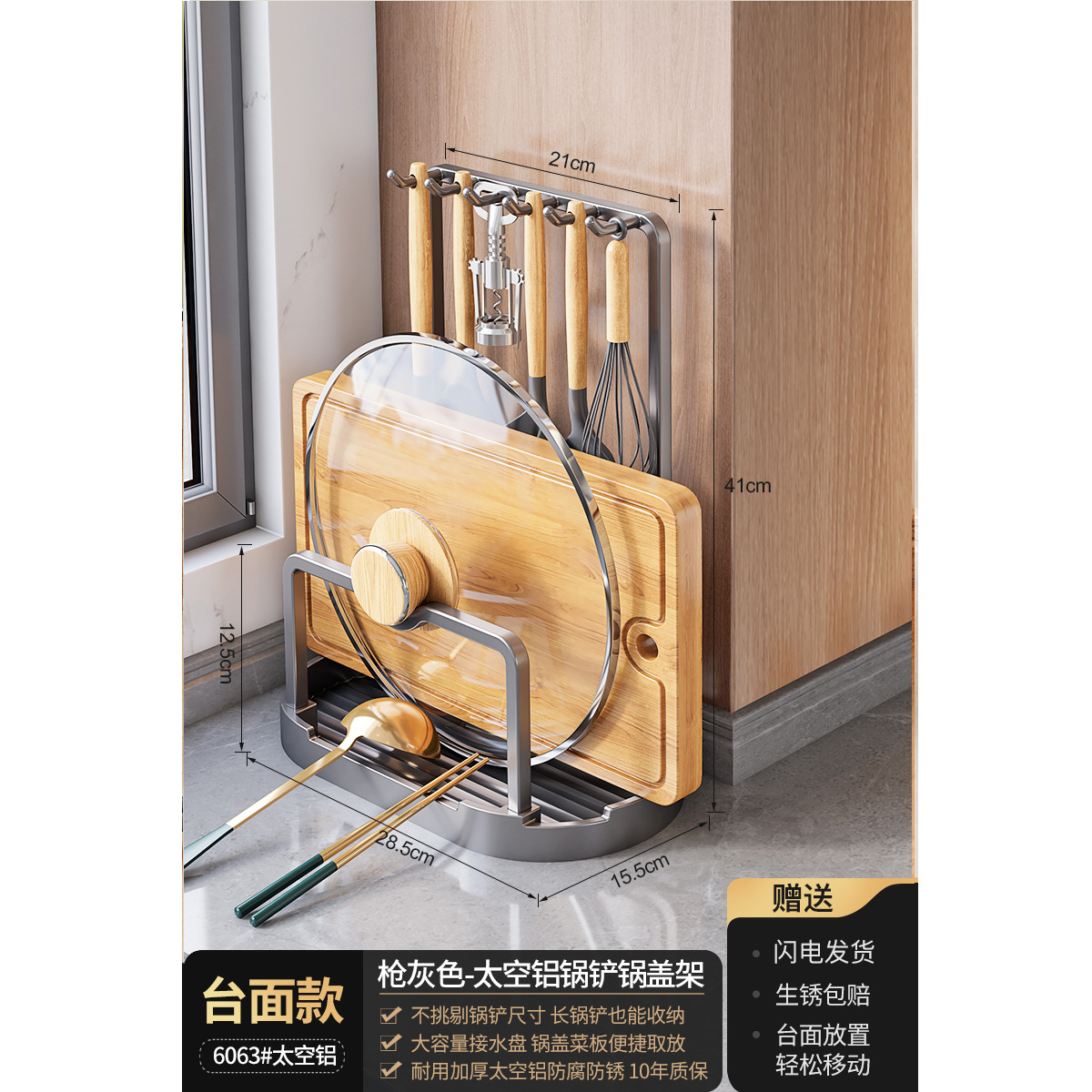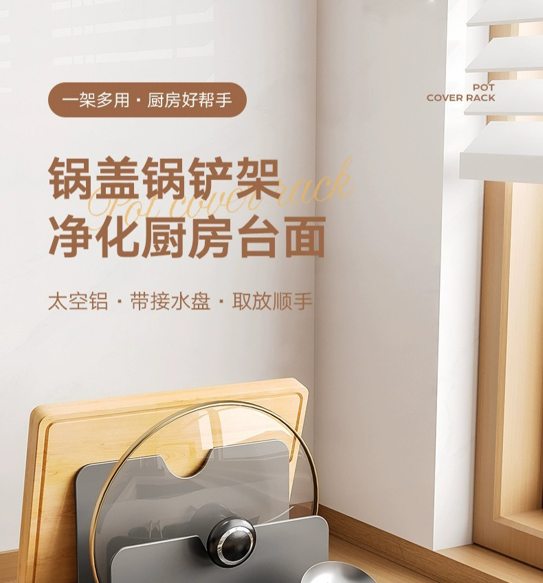총 회색 주방 냄비 커버 랙 주걱 홀더 스토리지 랙 커팅 보드 다기능 가정용 테이블 스탠드 도마 스토리지 랙스토어 가기