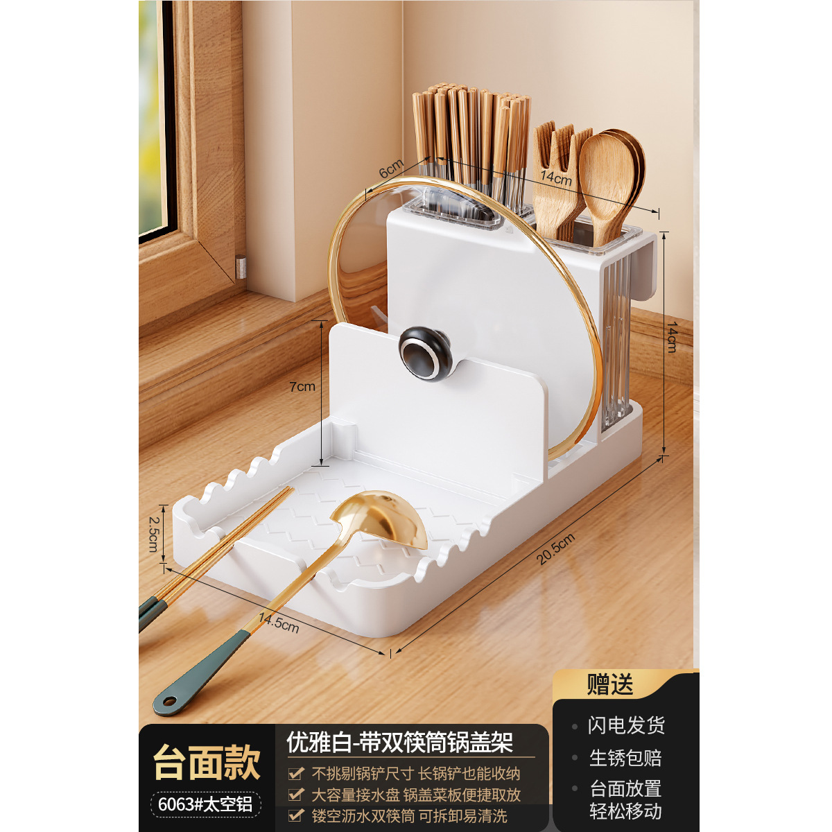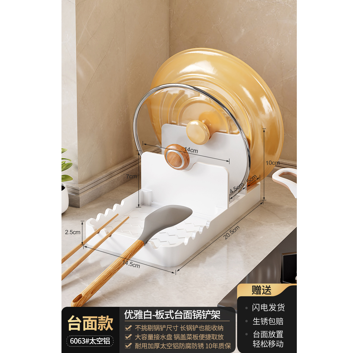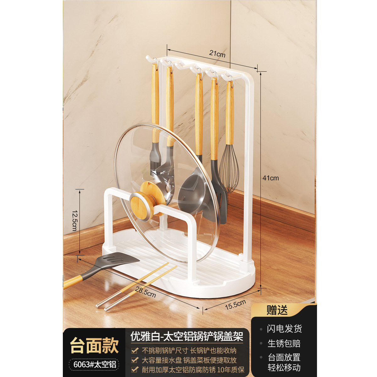총 회색 주방 냄비 커버 랙 주걱 홀더 스토리지 랙 커팅 보드 다기능 가정용 테이블 스탠드 도마 스토리지 랙스토어 가기