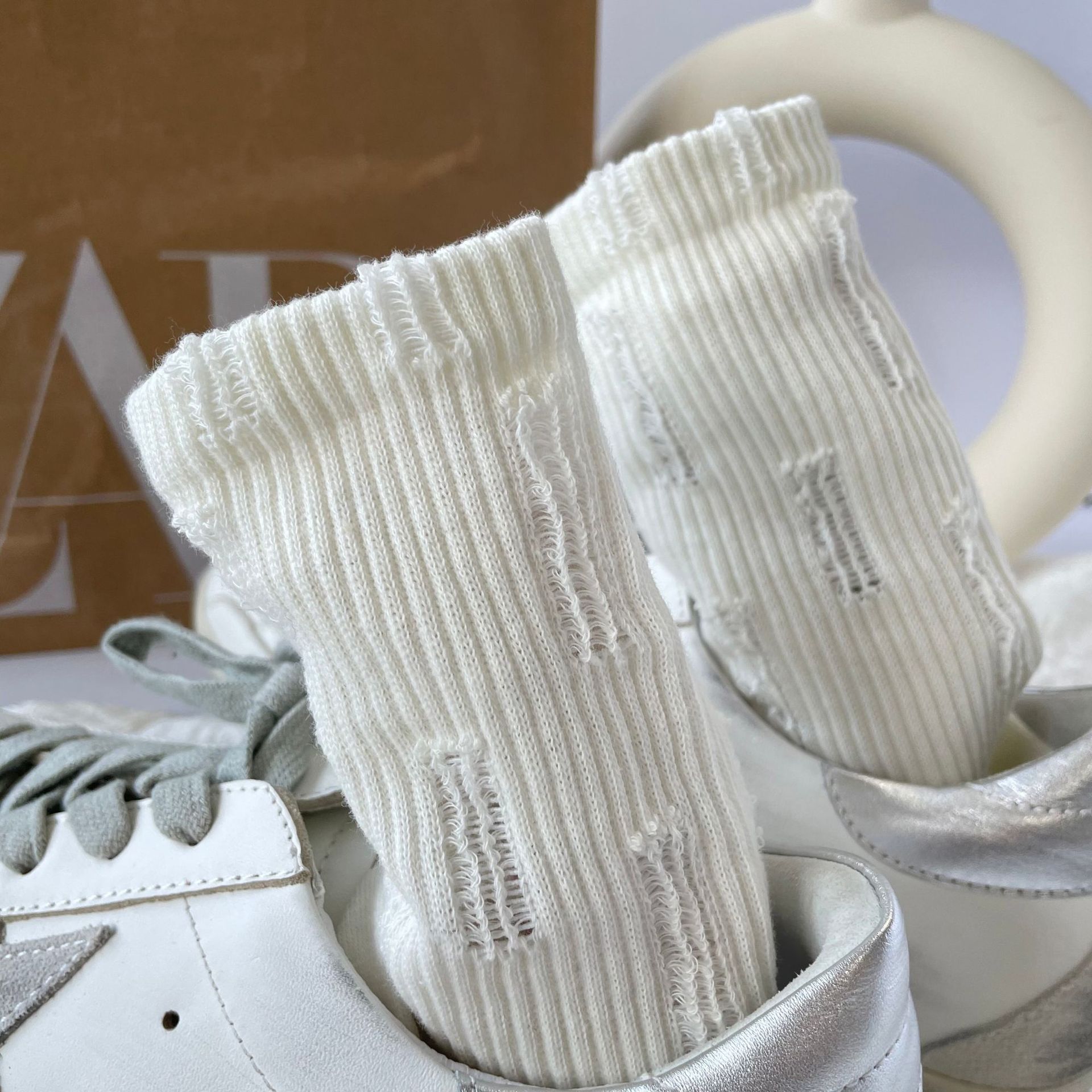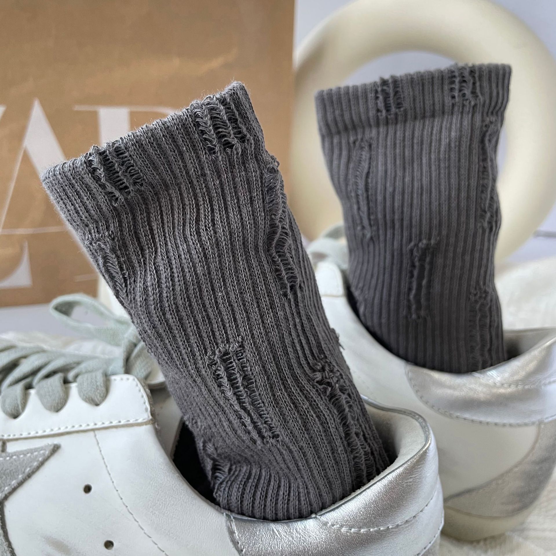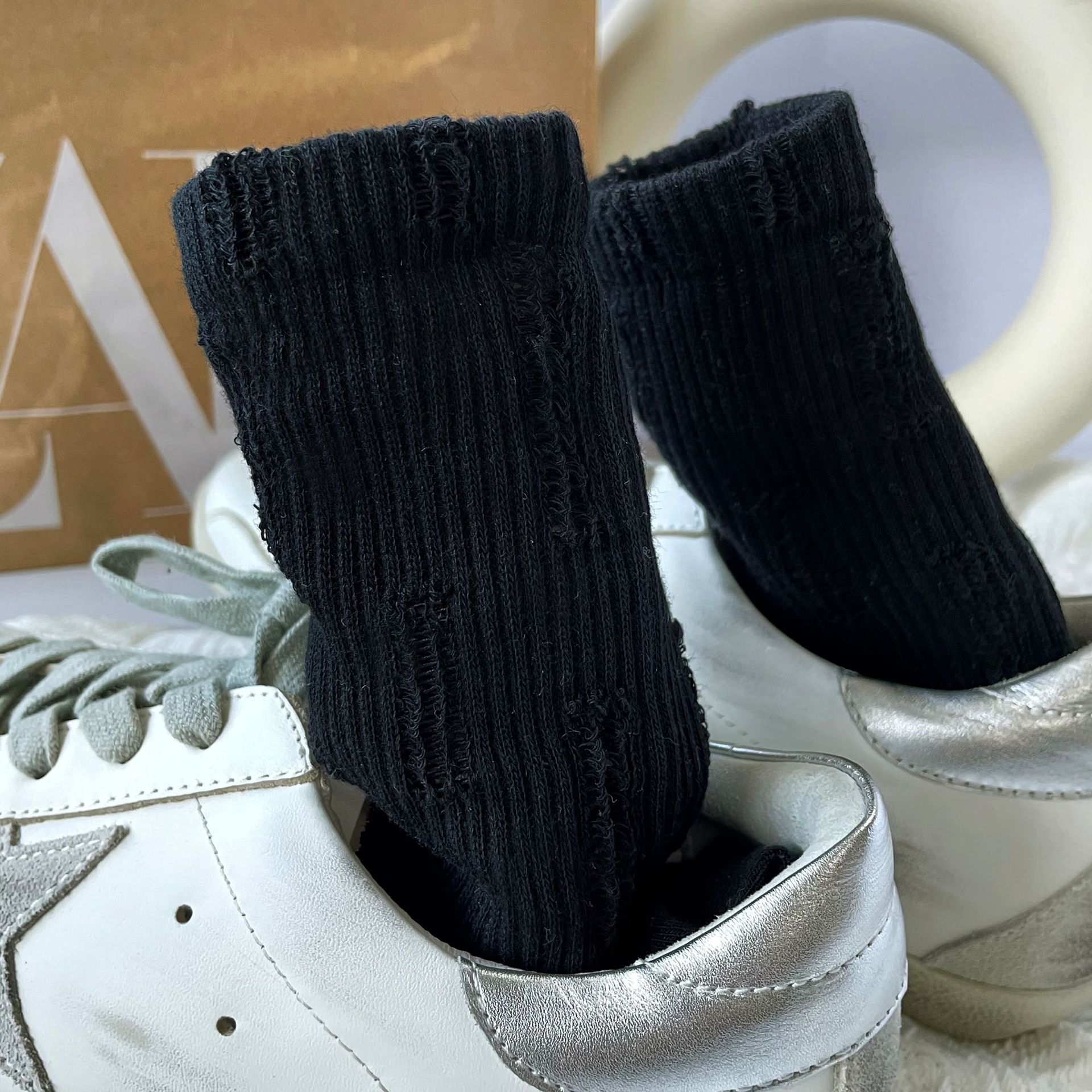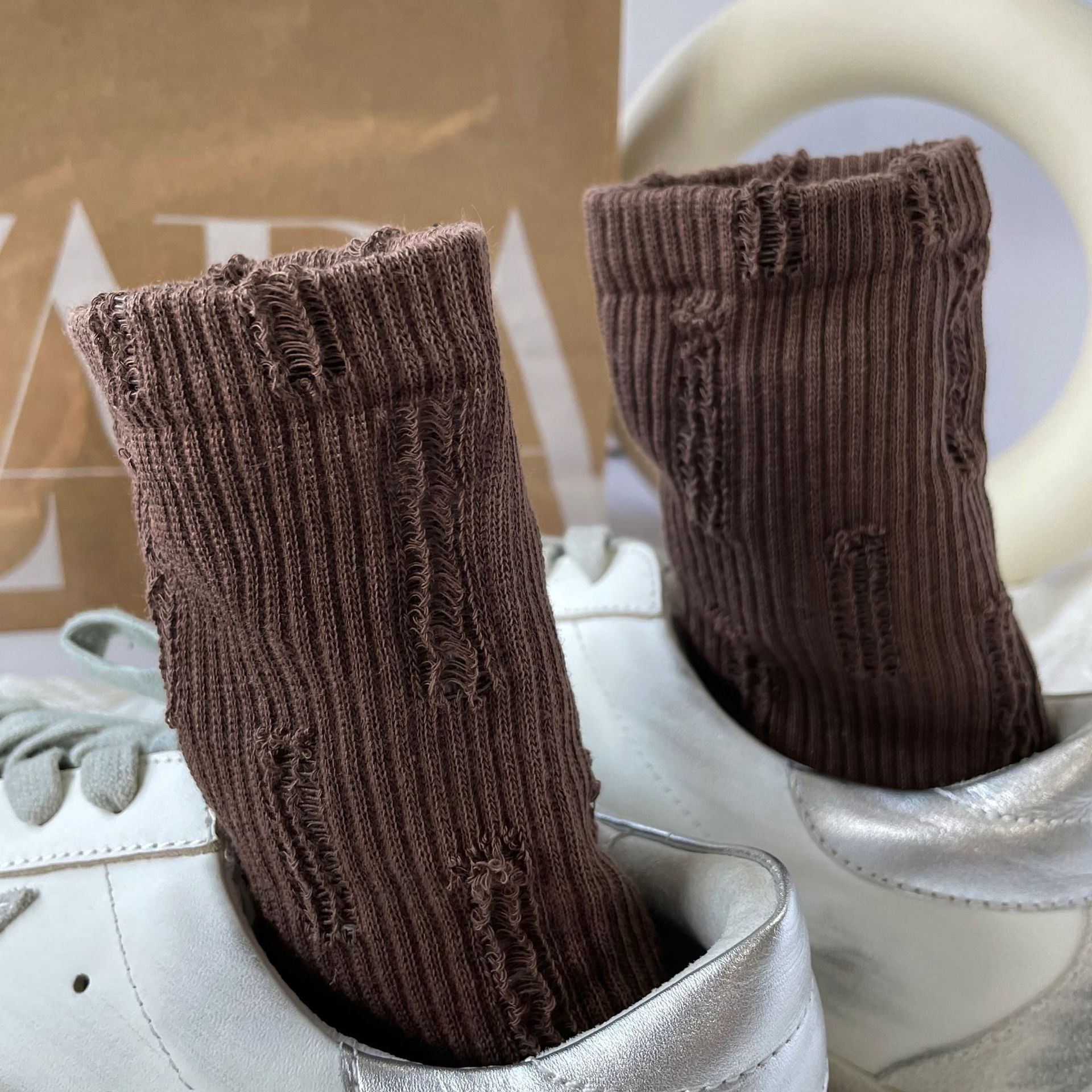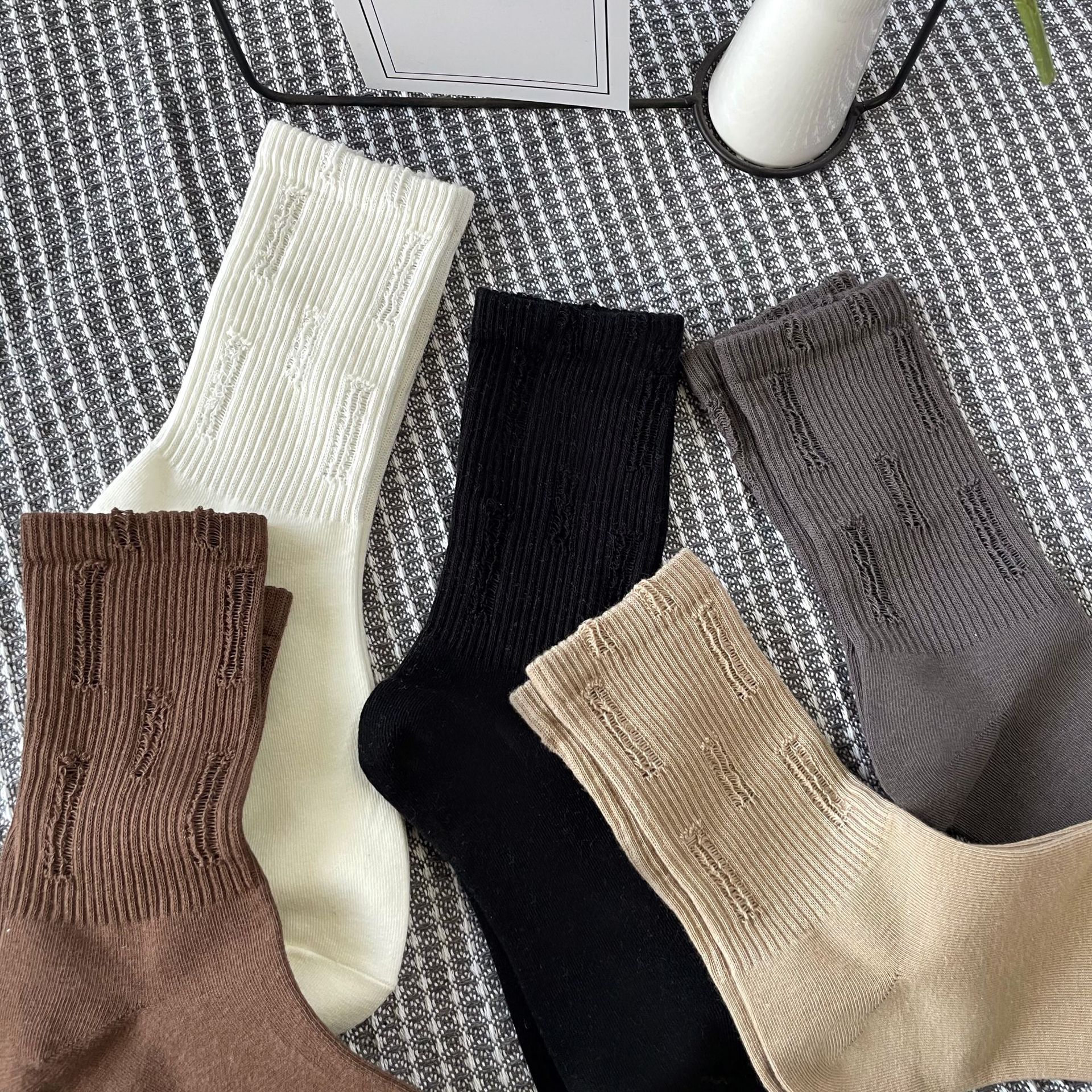 가을과 겨울 새로운 중간 송아지 여성 양말 간단한 Maillard 다크 브라운 면 양말은 거지 양말을 찢었습니다.스토어 가기