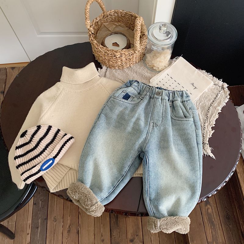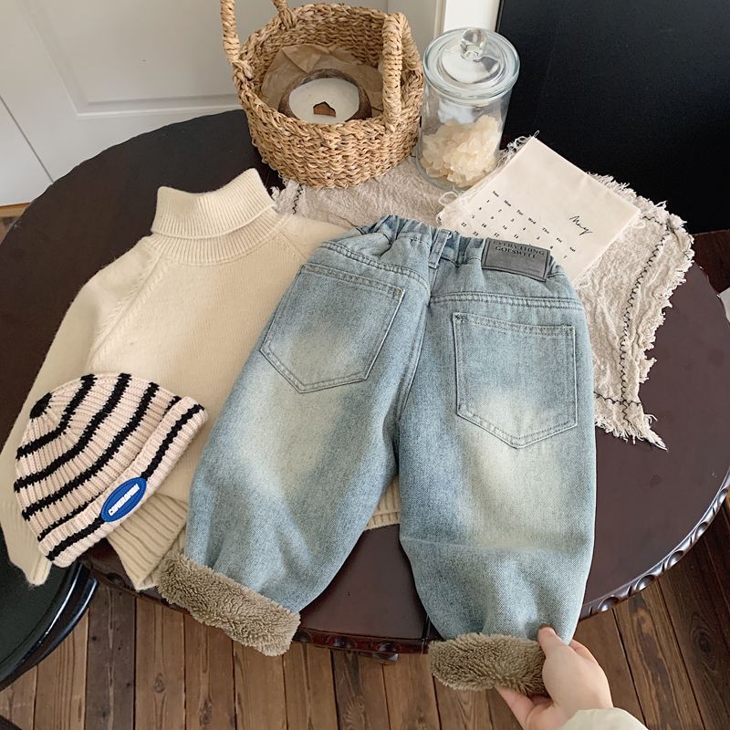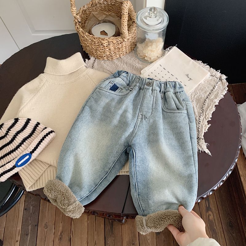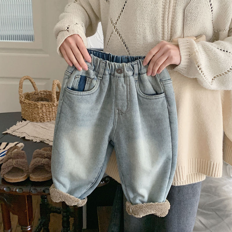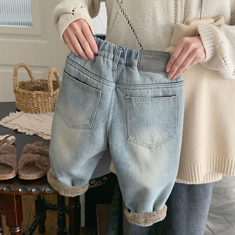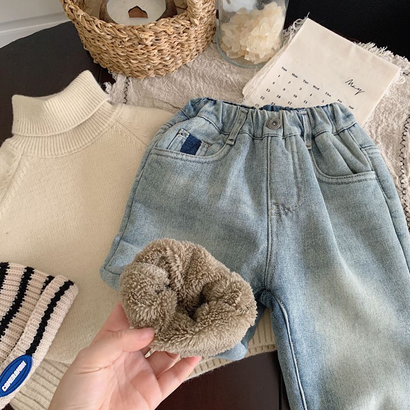 남아용 기모 데님 팬츠 2025 겨울 신상 두꺼운 부드러운 아동용 기모 두꺼운 캐주얼 패션 바지스토어 가기