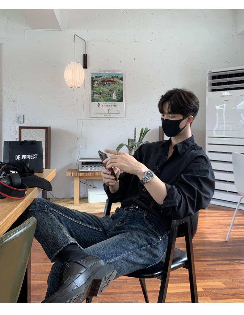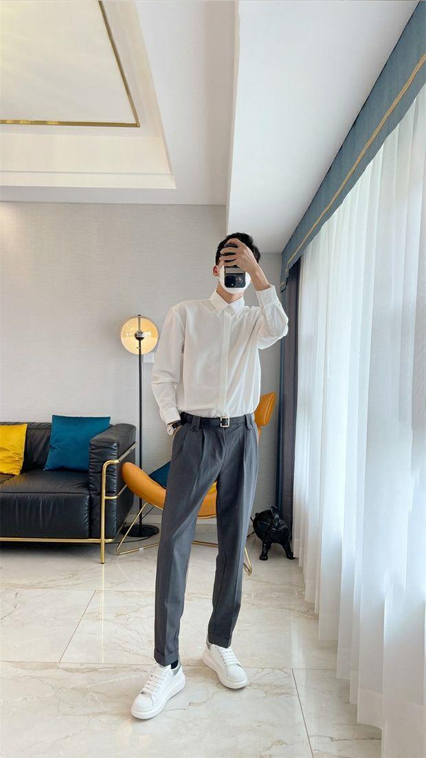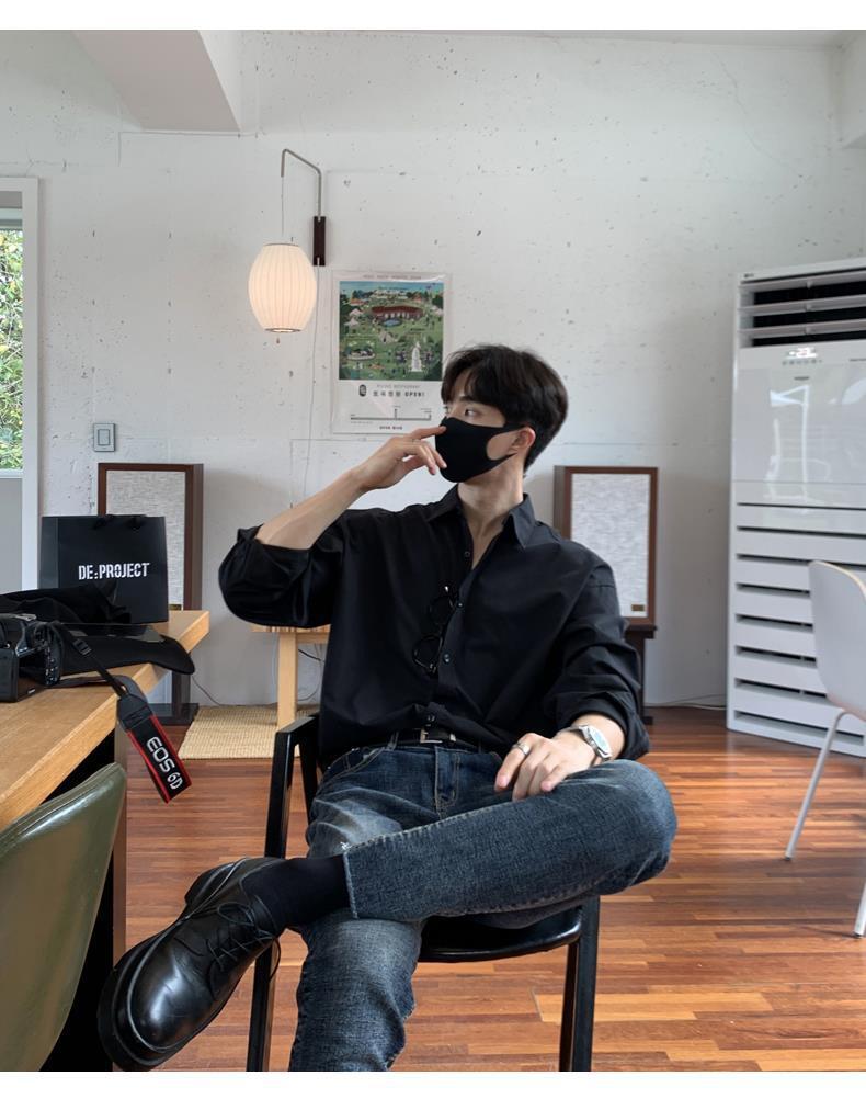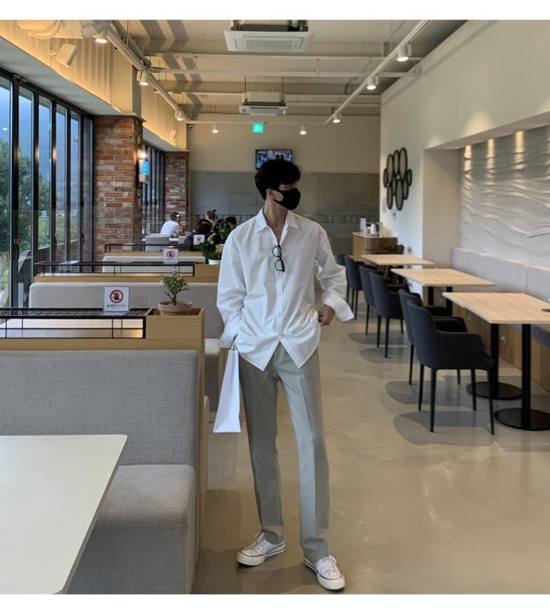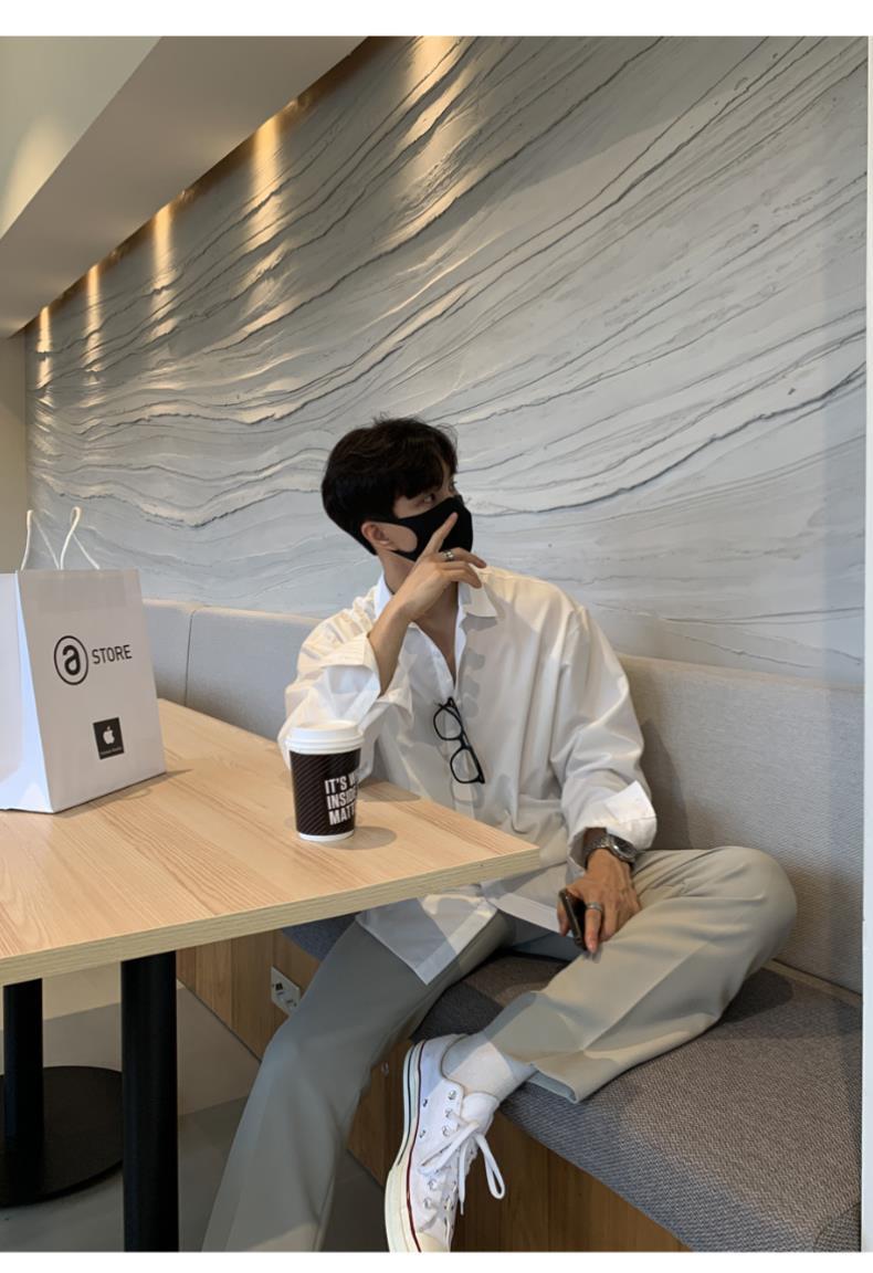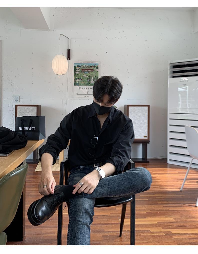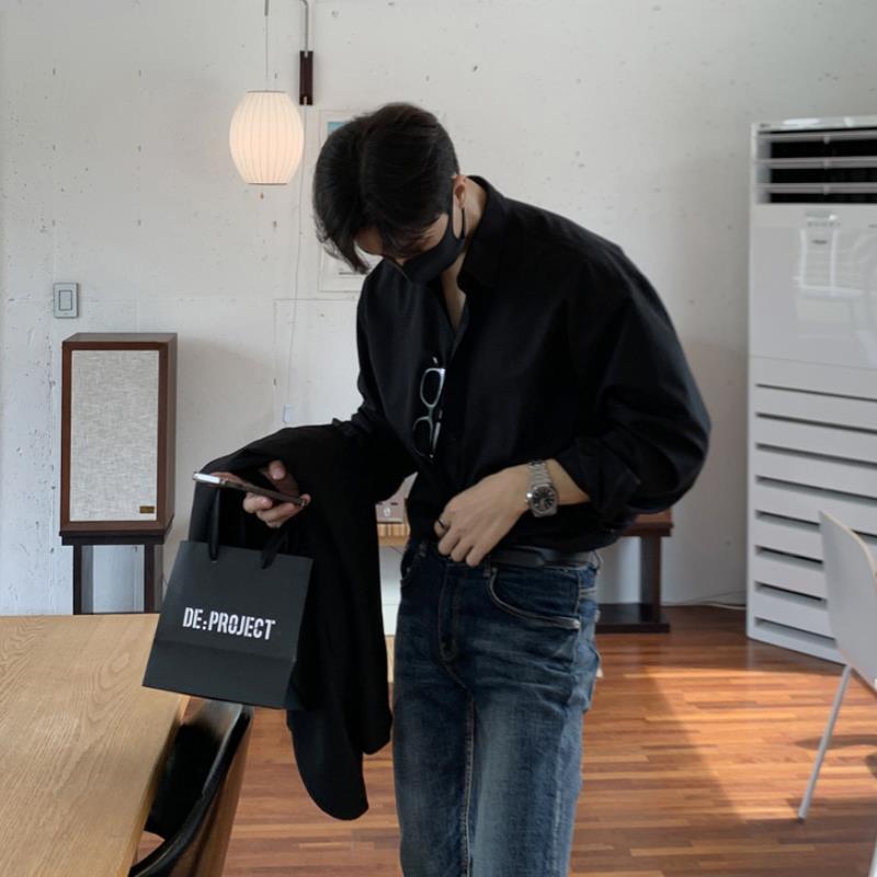 라이트 성숙한 스타일 다크 버튼 화이트 셔츠 남성용 하이 엔드 센스 느슨한 긴팔 세트 내부 셔츠 일본식 시티 보이 셔츠스토어 가기