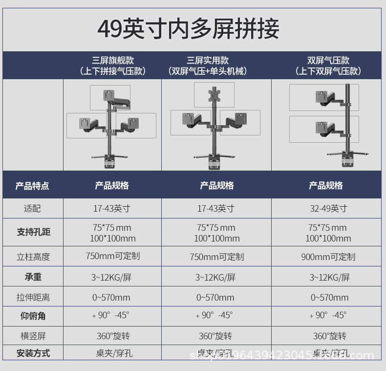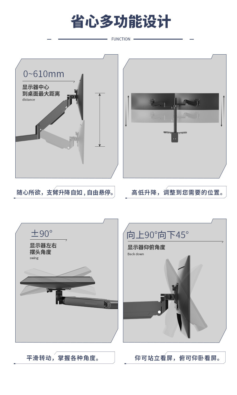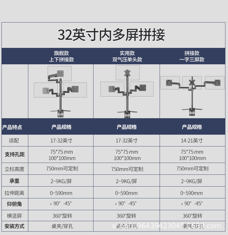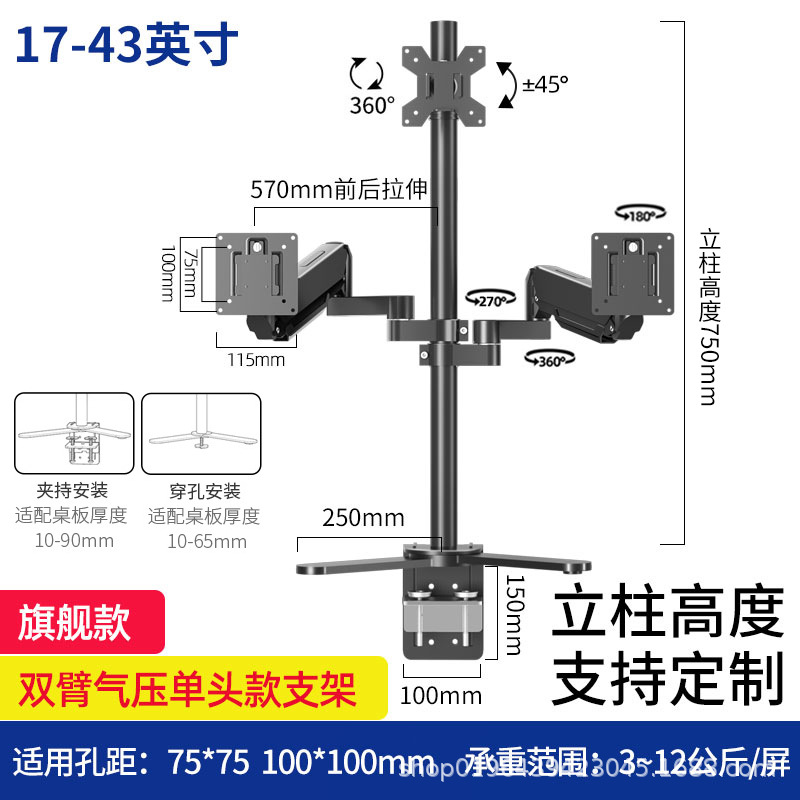 • [캔틸레버] 17-32 인치 [왼쪽 및 오른쪽/아래 듀얼 스크린] 데스크탑 모델