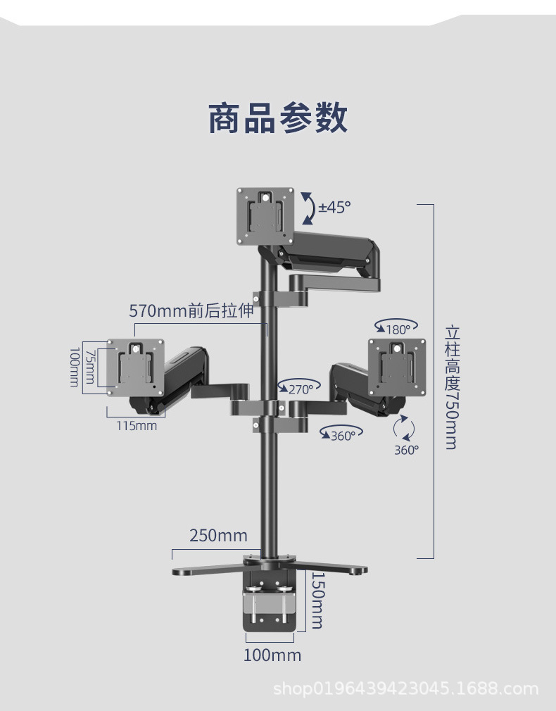 공장은 17-43 인치 듀얼 스크린 3 스크린 4 스크린 6 스크린 멀티 스크린 모니터 컴퓨터 브래킷 캔틸레버 기계 팔을 보냅니다