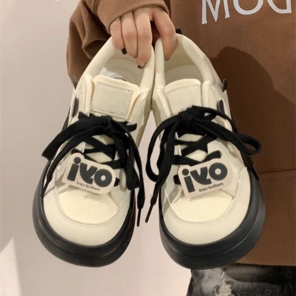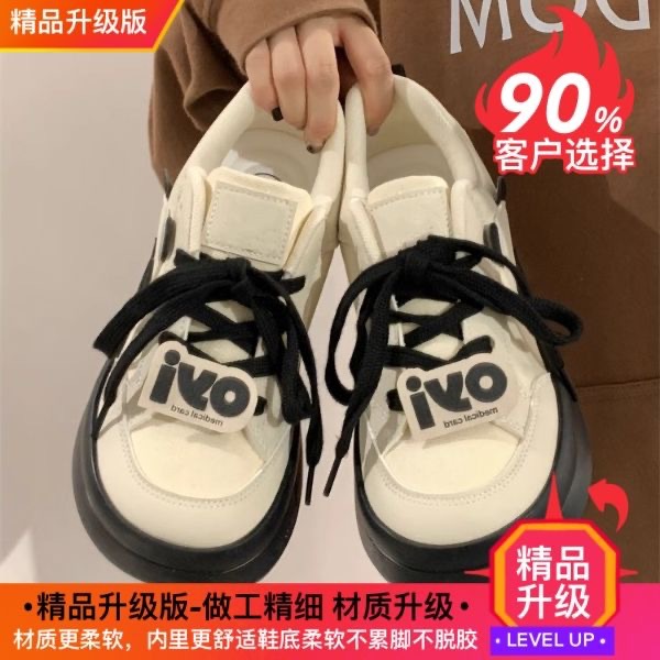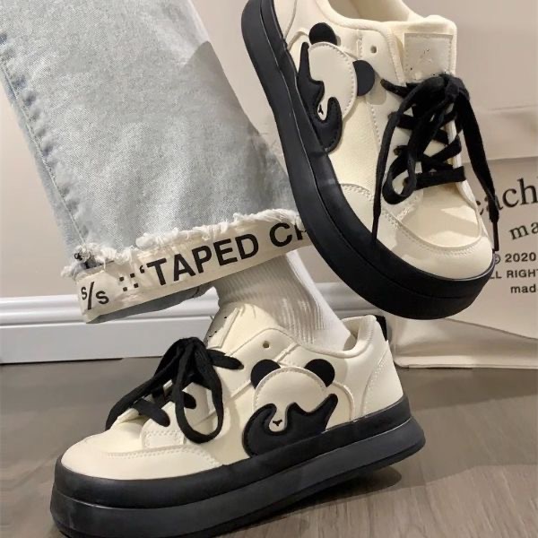 인기있는 흑백 팬더 학생 한국식 올 매치 화이트 신발 밀크 푸푸 틈새 여성 신발 추악한 귀여운 엄지 발가락 신발 보드 신발스토어 가기