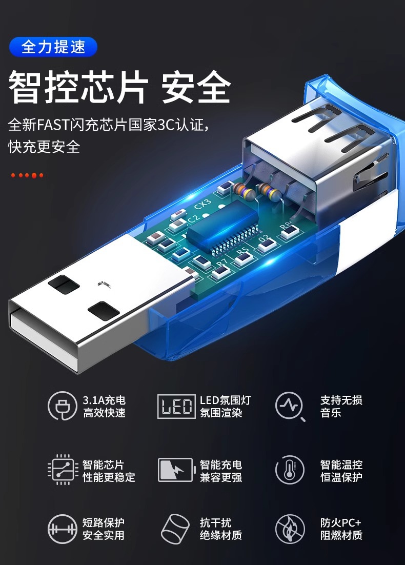 • 3.1 번개 빠른 충전 + 헤드 램프 + s 데이터 전송