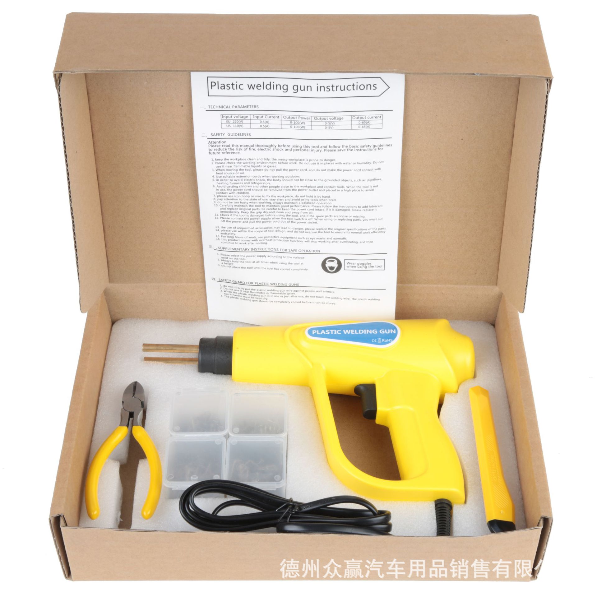 • 노란색 70W 플라스틱 용접 기계 카톤 펜치 나이프 라이닝 세트 사양
