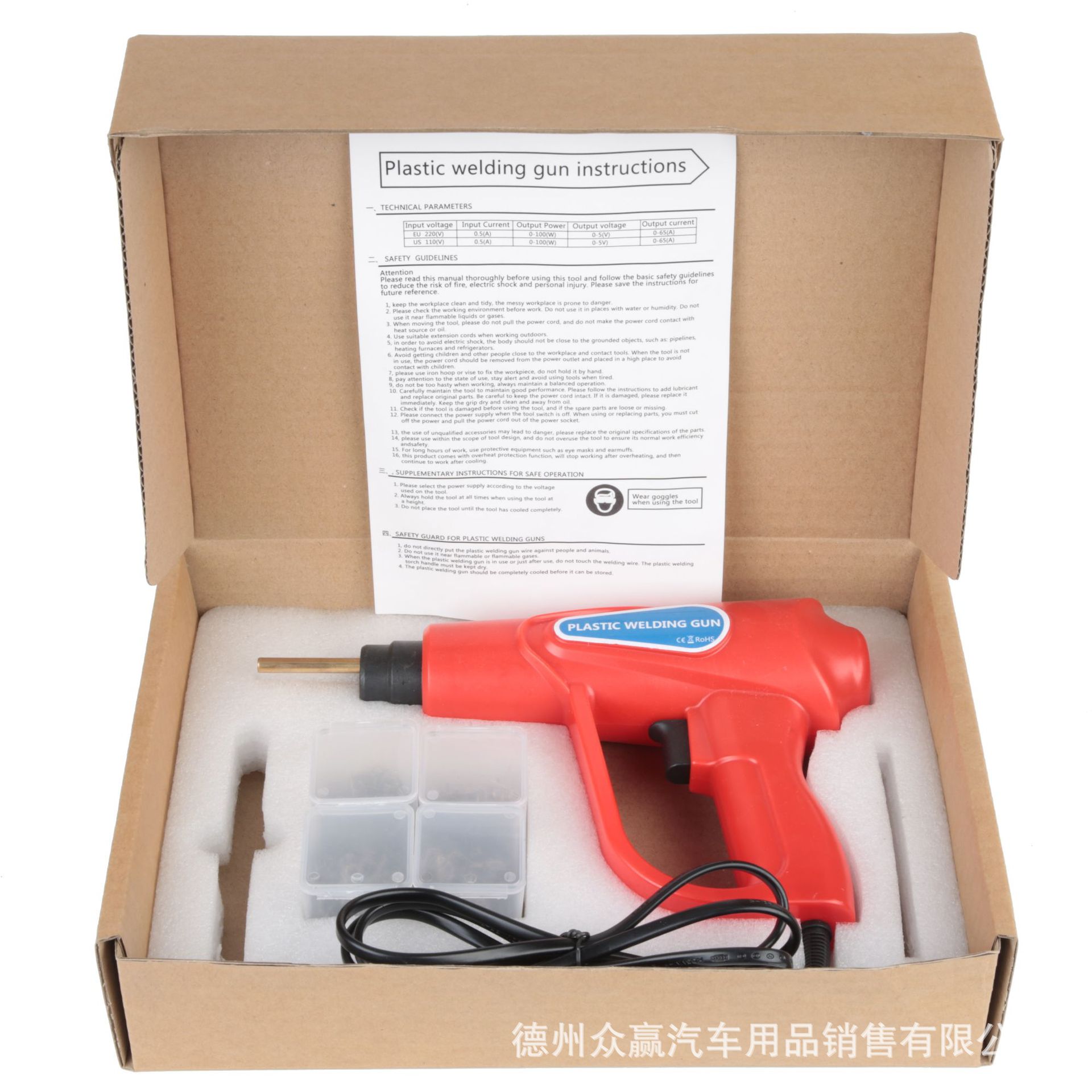 • 레드 70W 플라스틱 용접 기계 카톤 펜치 나이프 라이닝 세트 사양