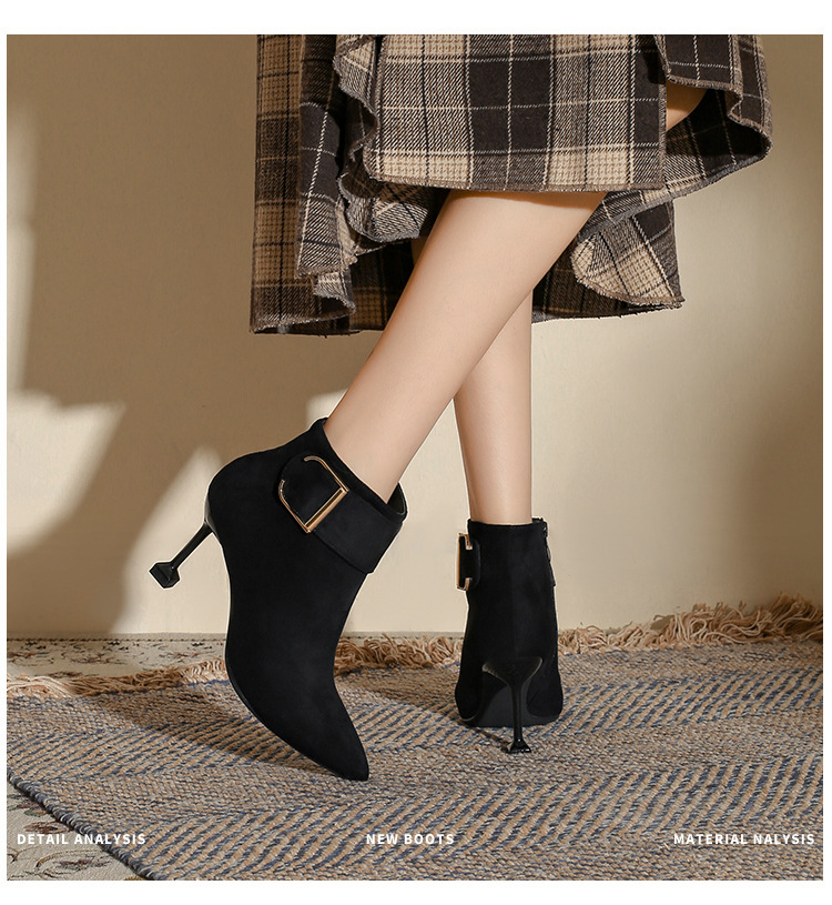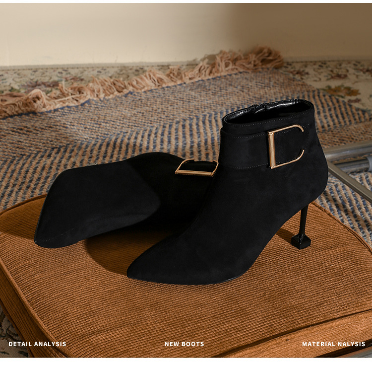 스몰 사이즈 313233 겨울 뉴 스웨이드 뾰족한 스틸레토 힐 하이힐 신발 짧은 부츠 마틴 부츠 여성 부츠 플러스 사이즈 41-43