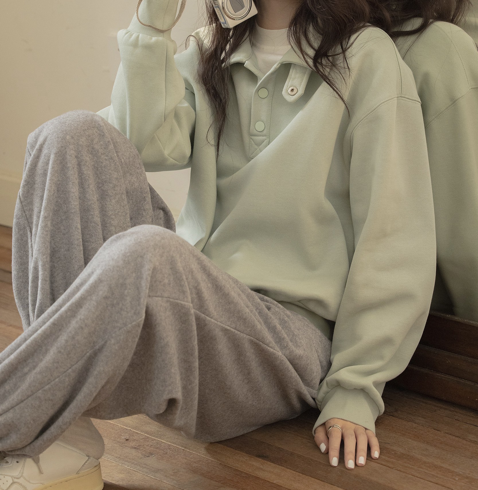 기모 스탠드 칼라 스웨터 여성의 가을과 겨울 반 카디건 느슨한 드롭 숄더 디자인 단색 폴로 탑 코트스토어 가기