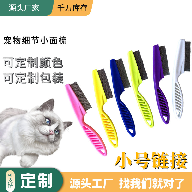 개 고양이 애완 동물 가게 청소 얼굴 빗 벼룩 제거 빗 플라스틱 손잡이 강철 바늘 부동 머리 제거 작은 흰색 빗스토어 가기